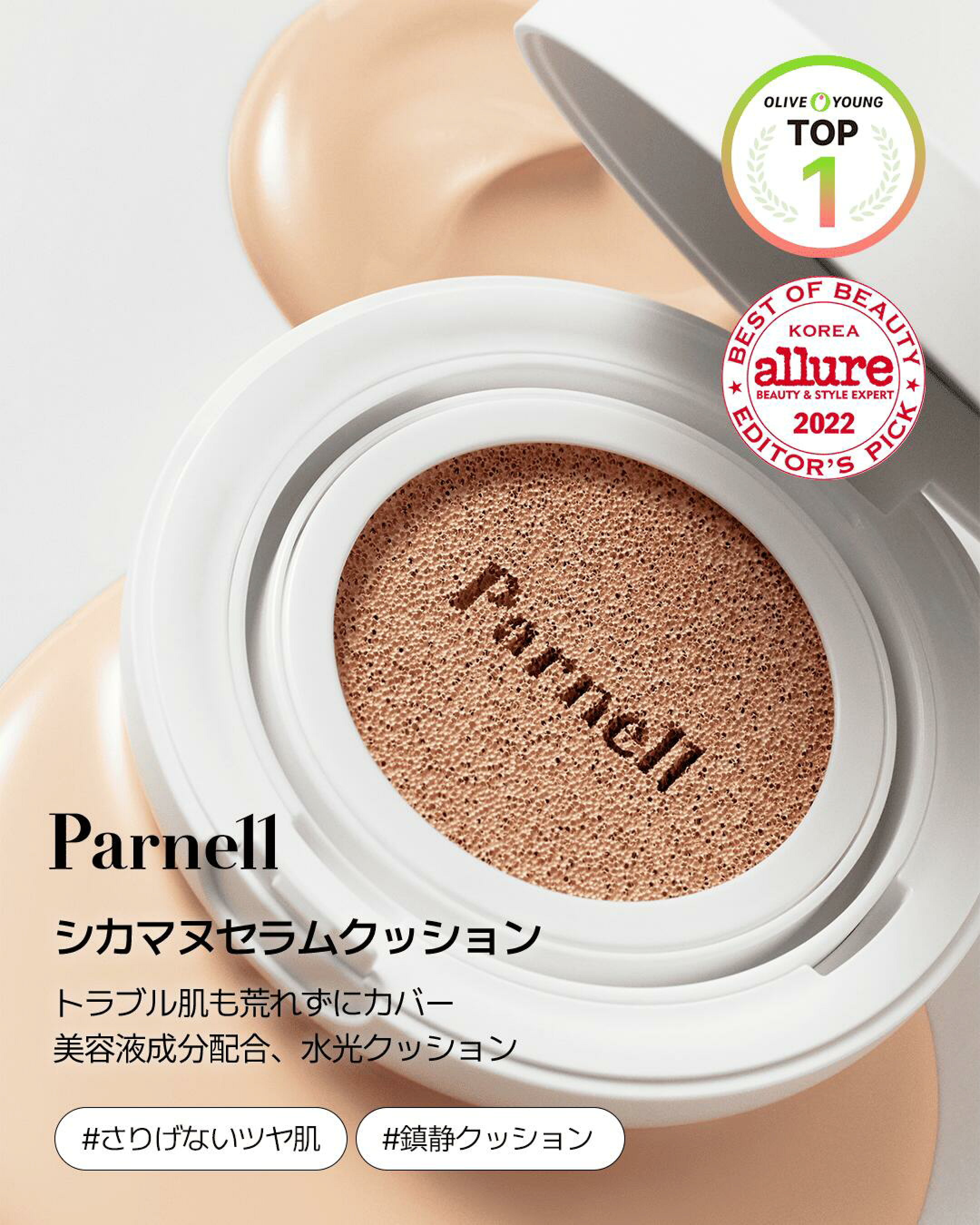 【Parnell公式】セラム クッションファンデ 21/23/24号 クッションファンデー 高密着 カバー ファンデーション ベースメイク 韓国コスメ 赤みカバー メイク 毛穴カバー 美容液成分配合 敏感肌 パーネルクッション ツヤ肌