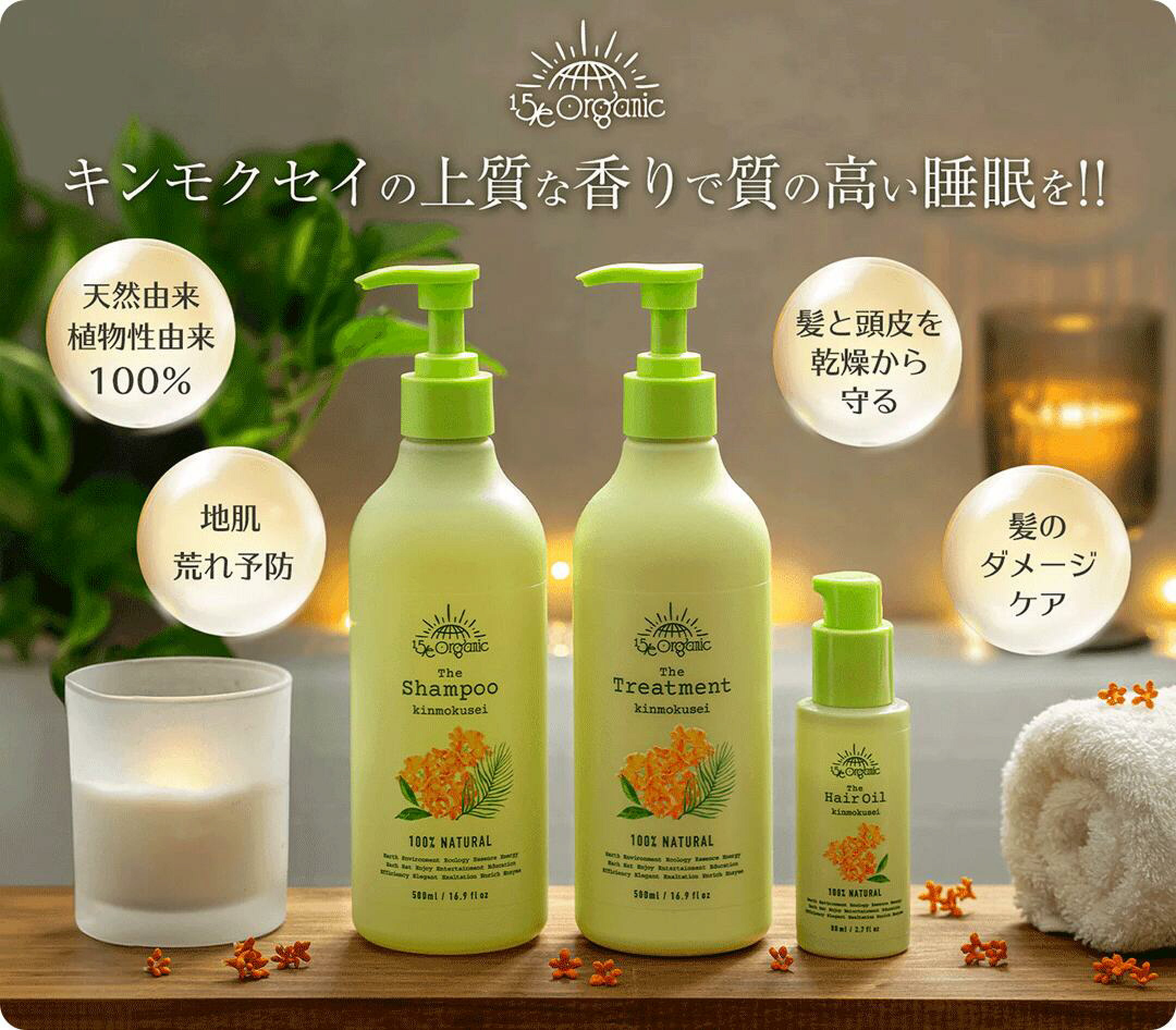 【 15/e organic ザ・シャンプー ザ・トリートメント 】 天然由来100% 植物性由来100% 無添加 弱酸性 合成成分不使用 合成香料不使用 頭皮ケア キンモクセイ 日本製 ONE OK ROCK Takaプロデュース オーガニック