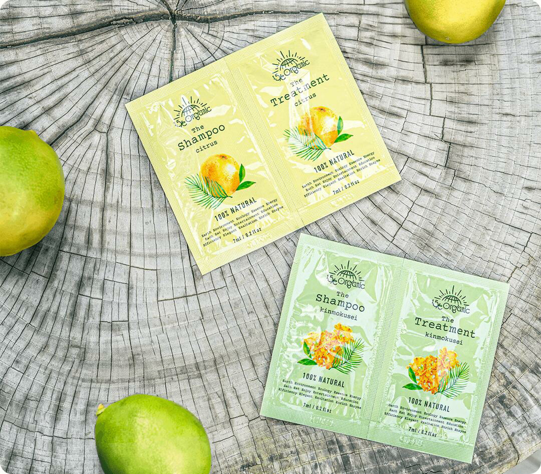 【 15/e organic ザ・シャンプー ザ・トリートメント サシェ 】 天然由来100% 植物性由来100% 無添加 弱酸性 合成成分不使用 ONE OK ROCK Takaプロデュース 頭皮ケア ヘアケア キンモクセイ オーガニック 日本製 お試し用 使い切り