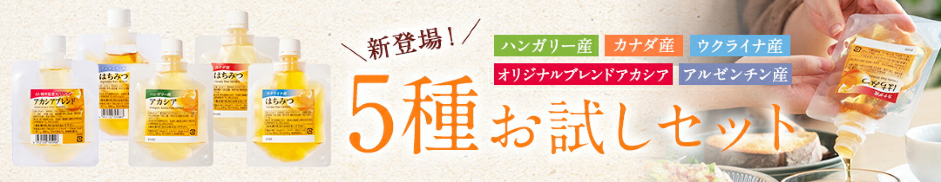 新発売!お試しはちみつ5種類食べ比べSETが送料無料!