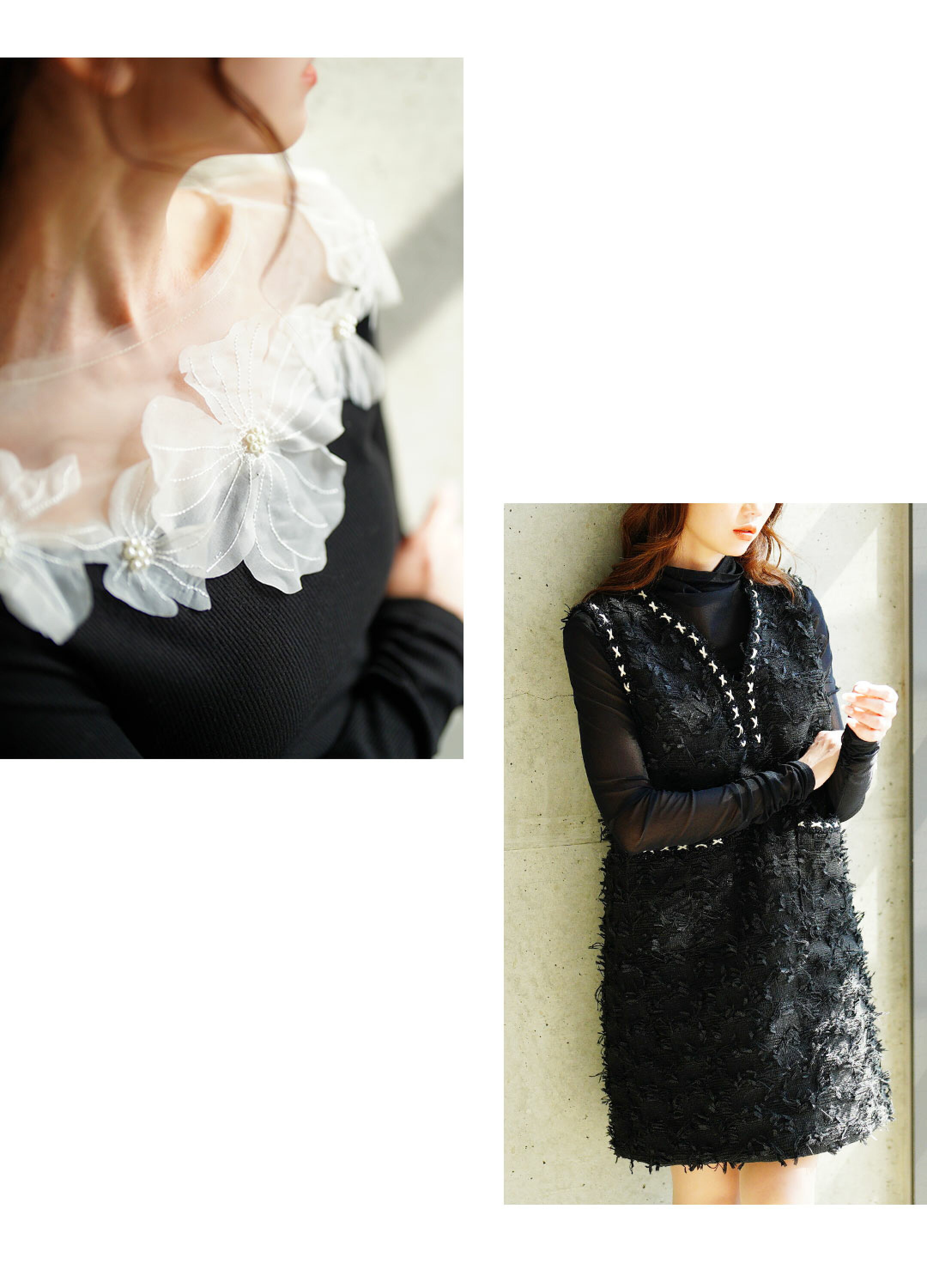 立体的に浮かび咲くチュールフラワーモチーフリブトップス レディース ファッション トップス カットソー Tシャツ 黒 花 大人可愛い 40代 レディースファッション 50代女性 ファッション 60代 ミセスファッション サワアラモード sawaalamode otona 【3月8日20時販売新作】