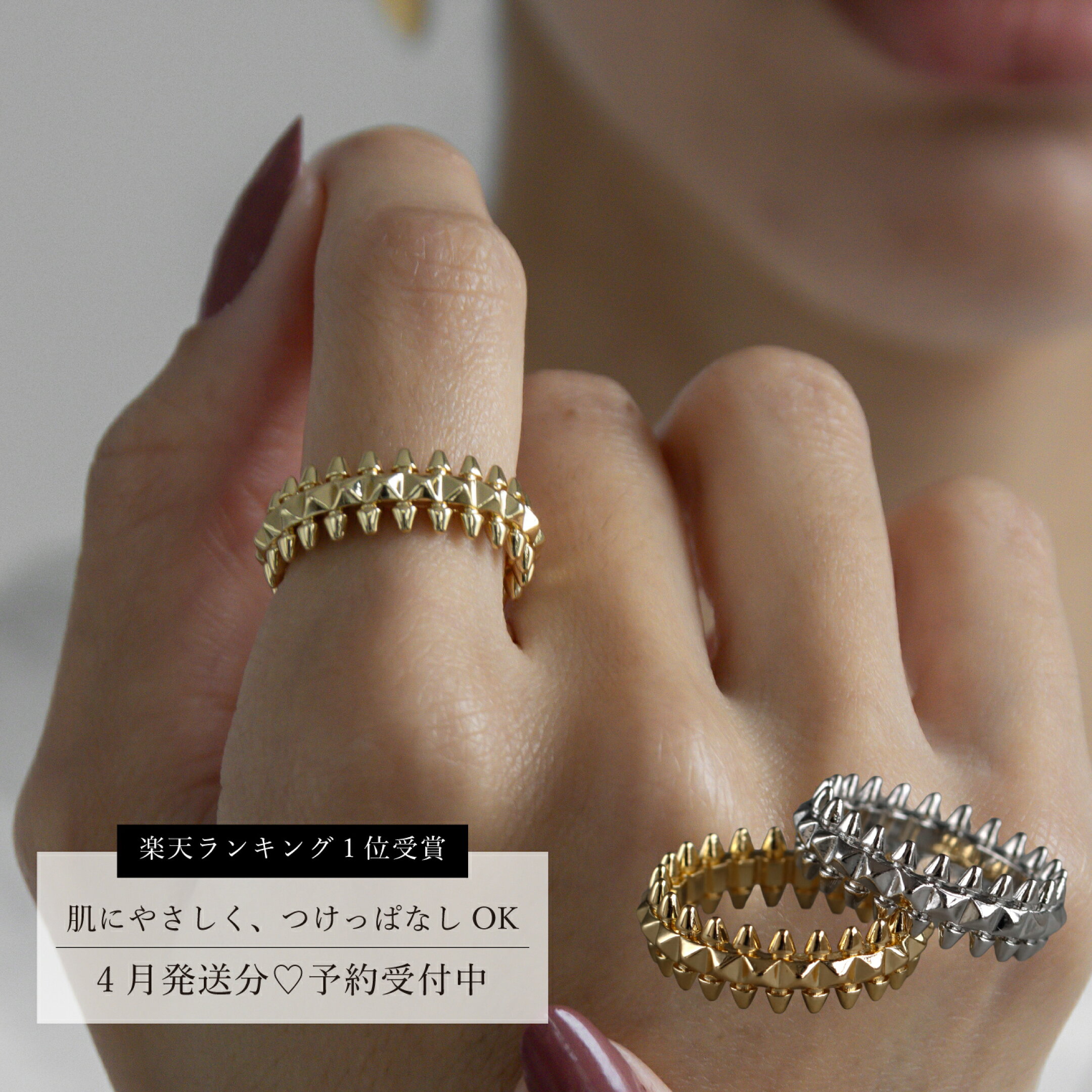 【一部予約】リング スパイク リング 指輪 レディース ステンレス 18K 高見え 上品 大人可愛い ステンレスリング 金属アレルギー対応 高級感 12号相当 16号相当 太め 個性派 おしゃれ 重ね付け