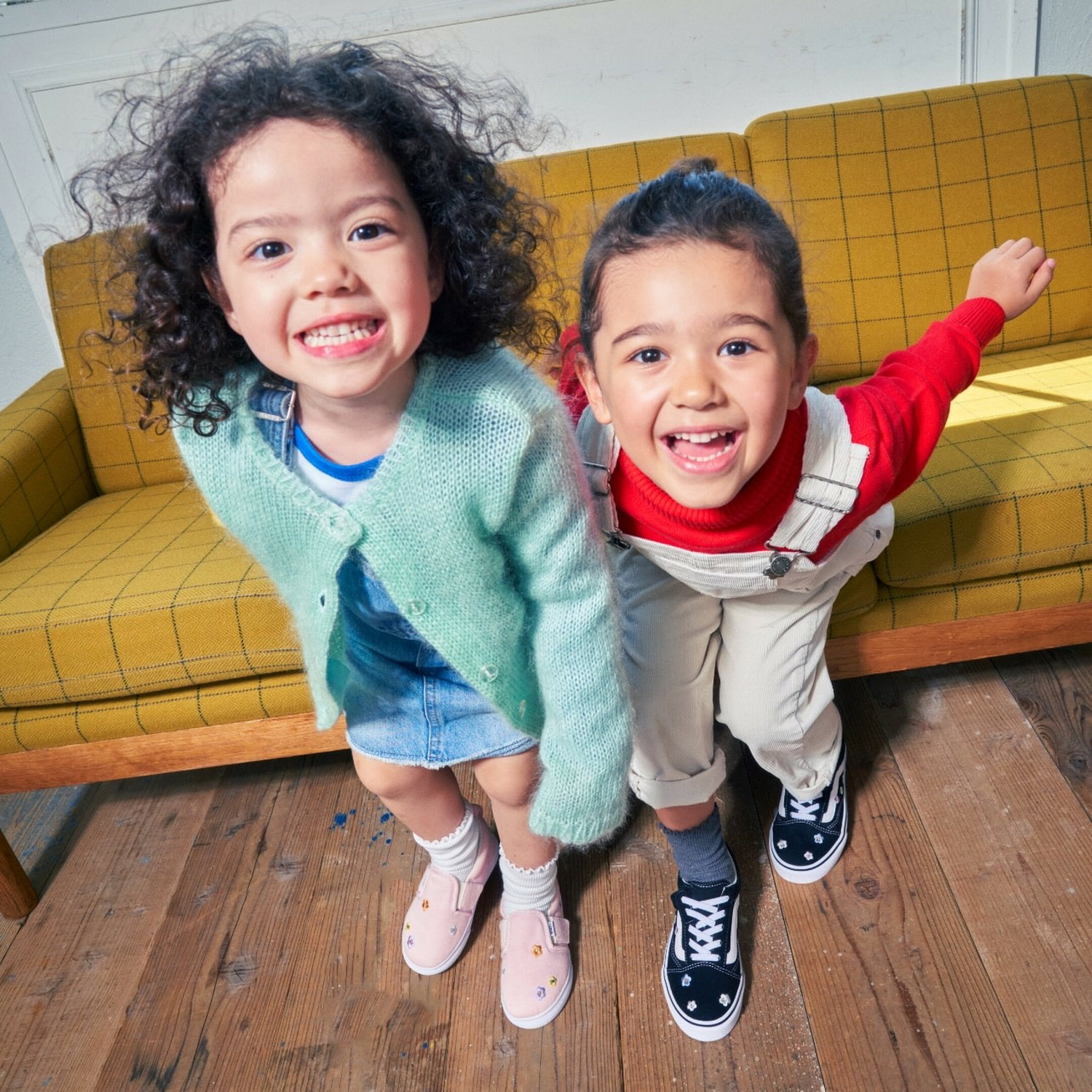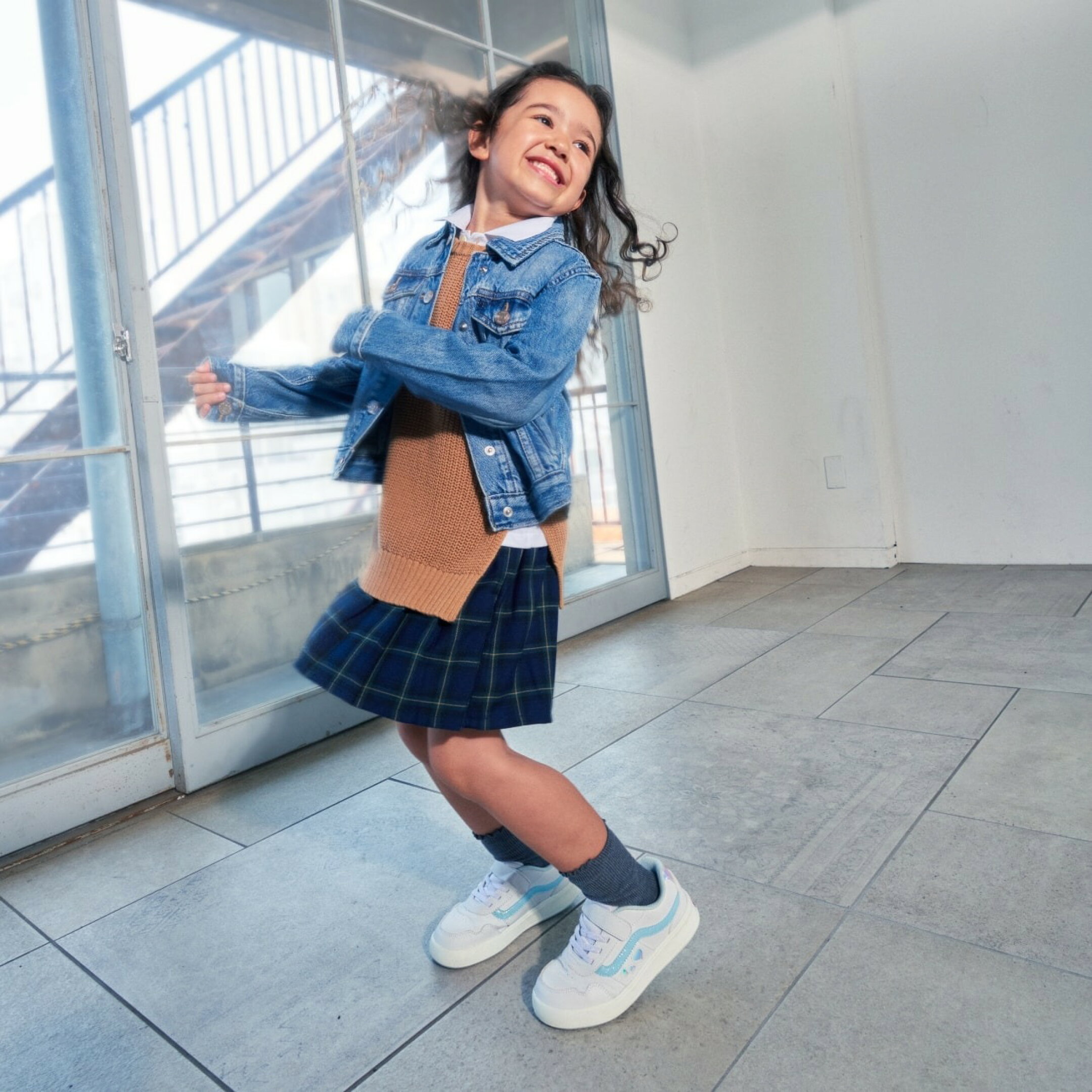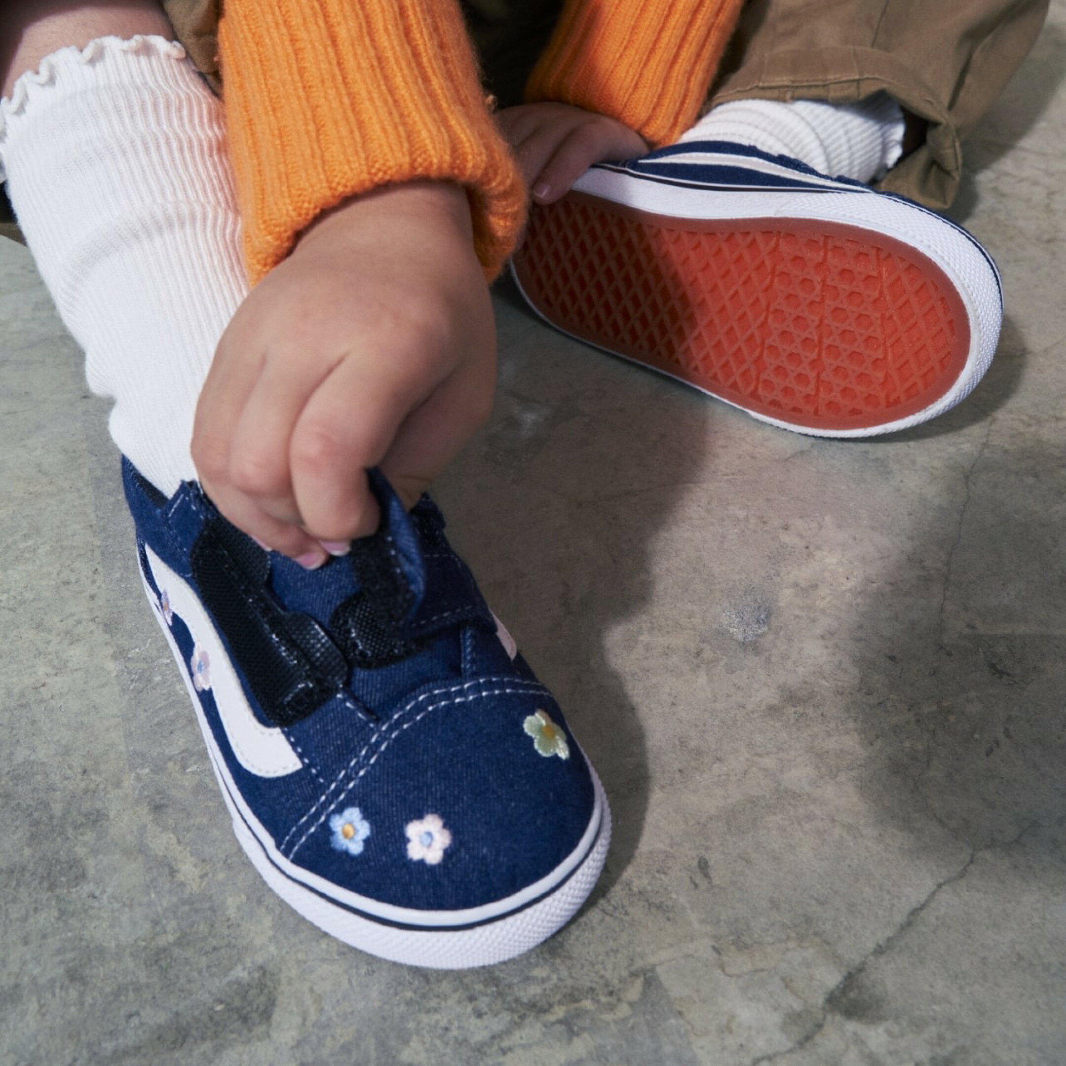 脱ぎ履きがしやすいよう、履き口にベルトストラップを使用。 柔らかいソールやゴム製のシューレースなど、VANSのいつものシルエットはそのままに、 キッズに優しい機能を多数搭載。