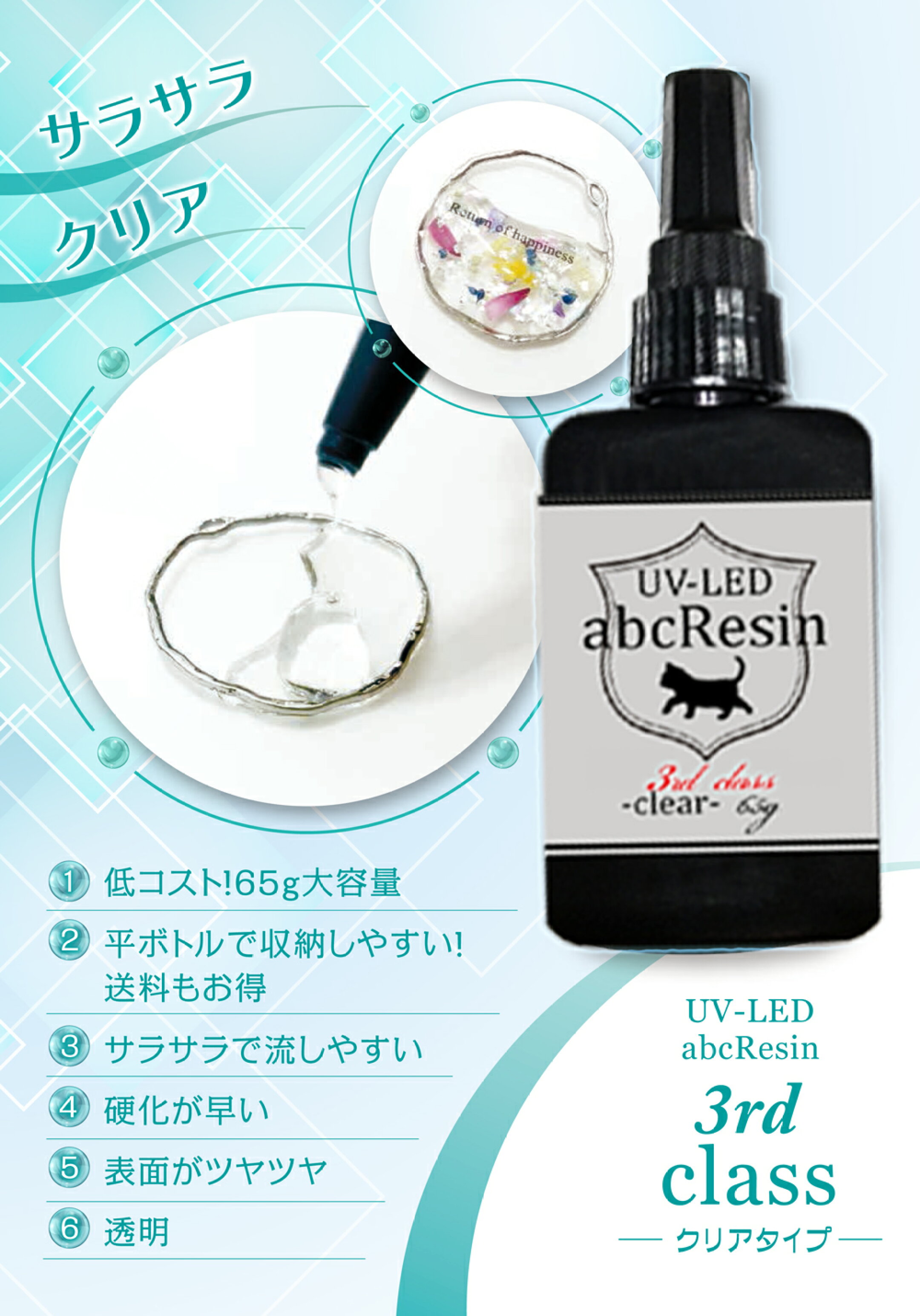 【当店オススメ!】UV-LED abcレジン【3rdクラス】クリア65g 1本 abc500en/オリジナルレジン/