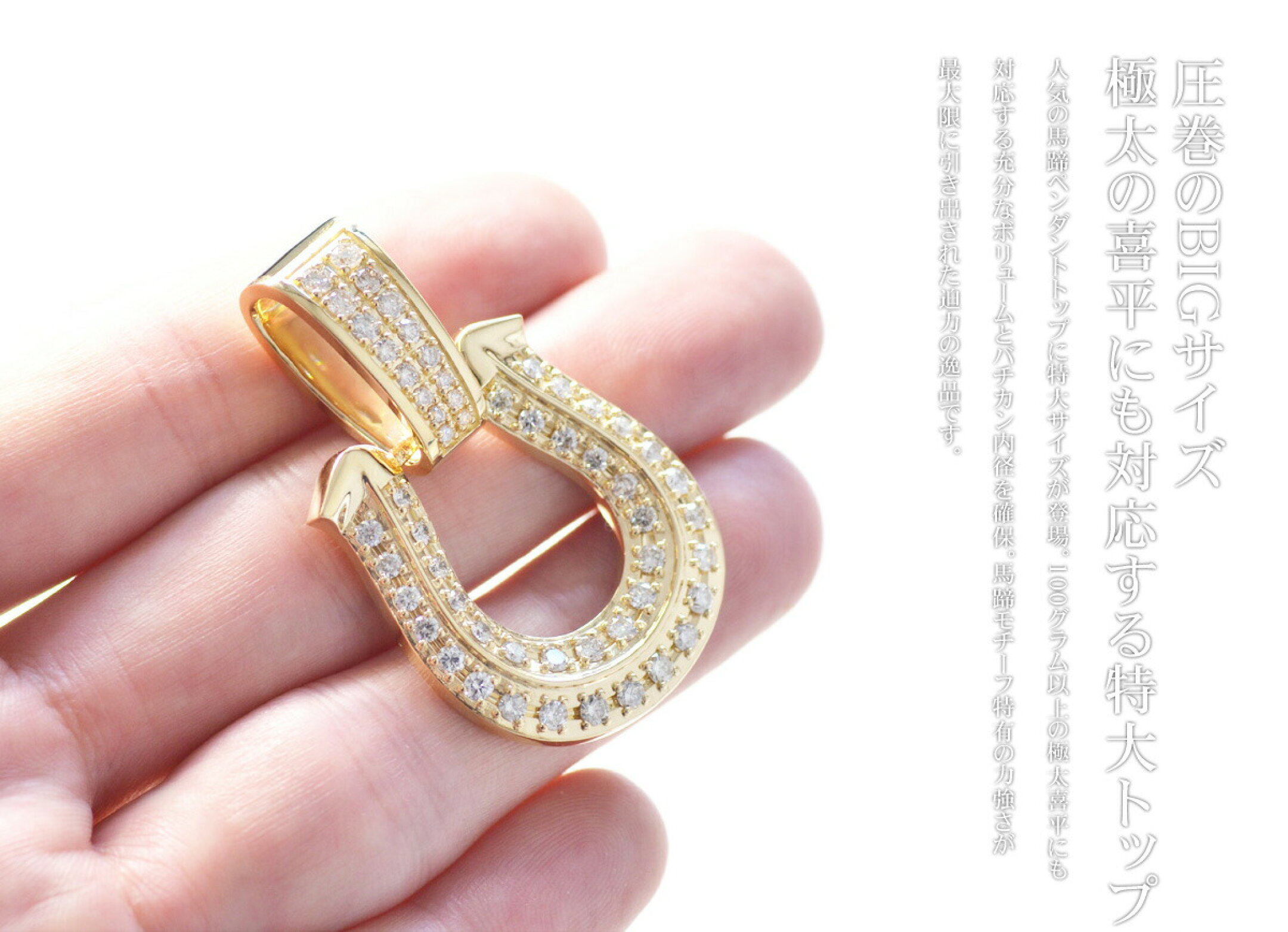 ペンダントトップ メンズ 18金 K18 18K 喜平用 ダイヤモンド 馬蹄 ホースシュー ペンダントヘッド イエローゴールド 喜平 ネックレストップ 大サイズ 鑑別書付き 大きめ シンプル プレゼント ギフト 【人気アイテム】【動画あり】