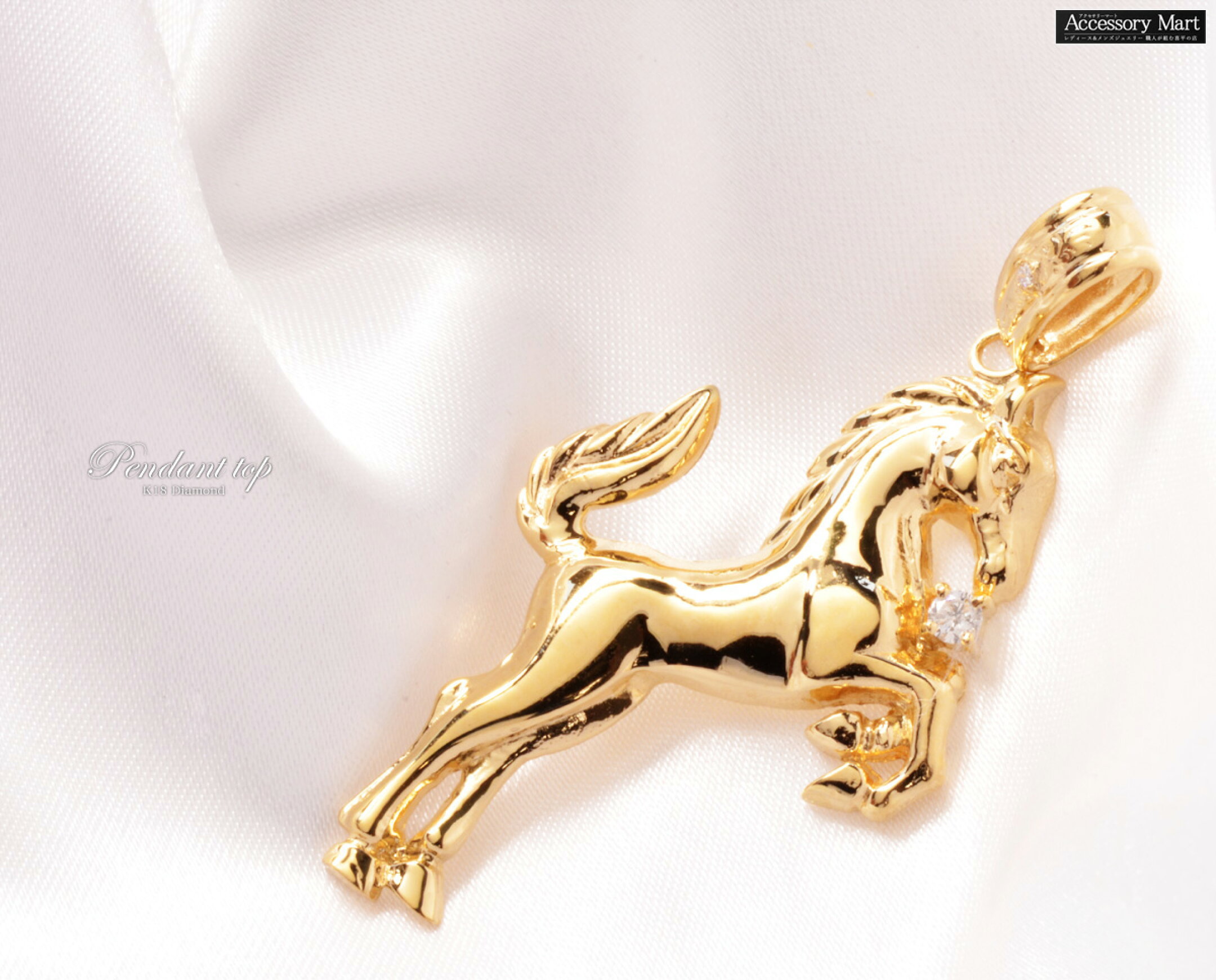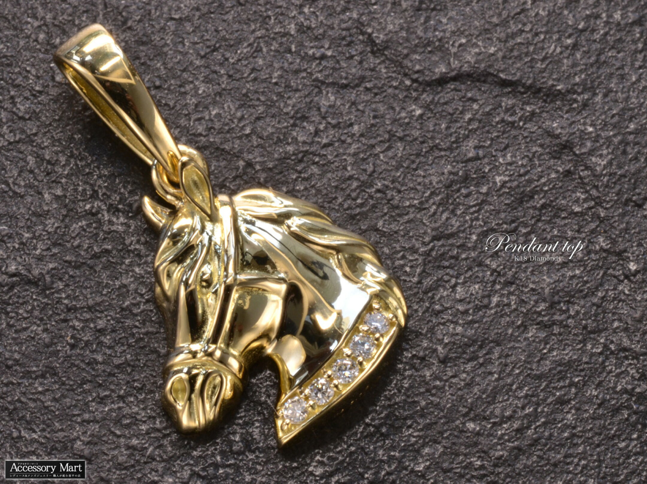 ペンダントトップ メンズ 18金 K18 18K ダイヤモンド 馬 ホース ペンダントヘッド ネックレストップ イエローゴールド 男性用 刻印入り 鑑別書付き シンプル 大き目 プレゼント ギフト