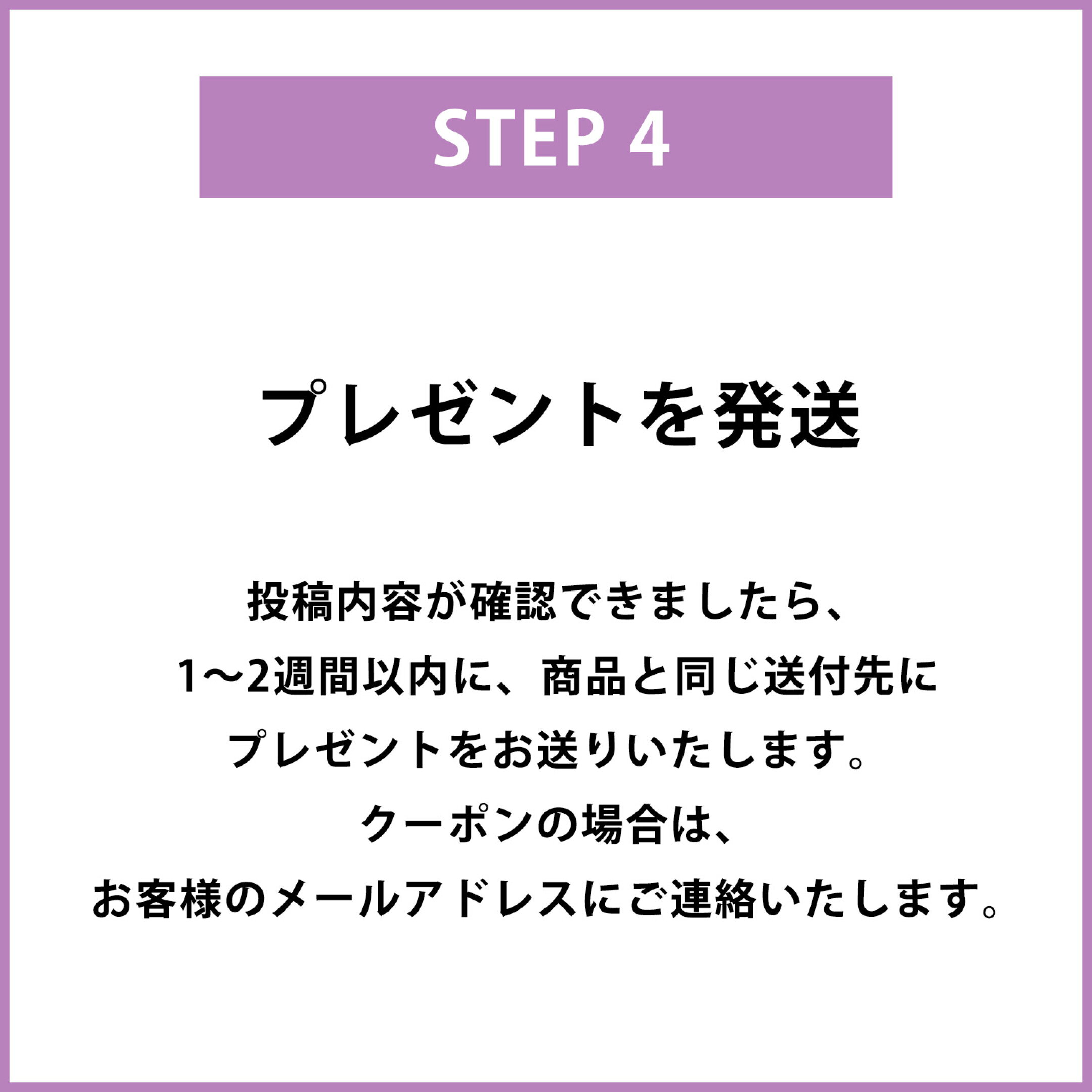7,投稿から3週間以上経ってもプレゼント発送のメールが届かない場合は、お手数ですが、【レビュー内容】と【注文番号】を添えて当店までご連絡くださいませ。
