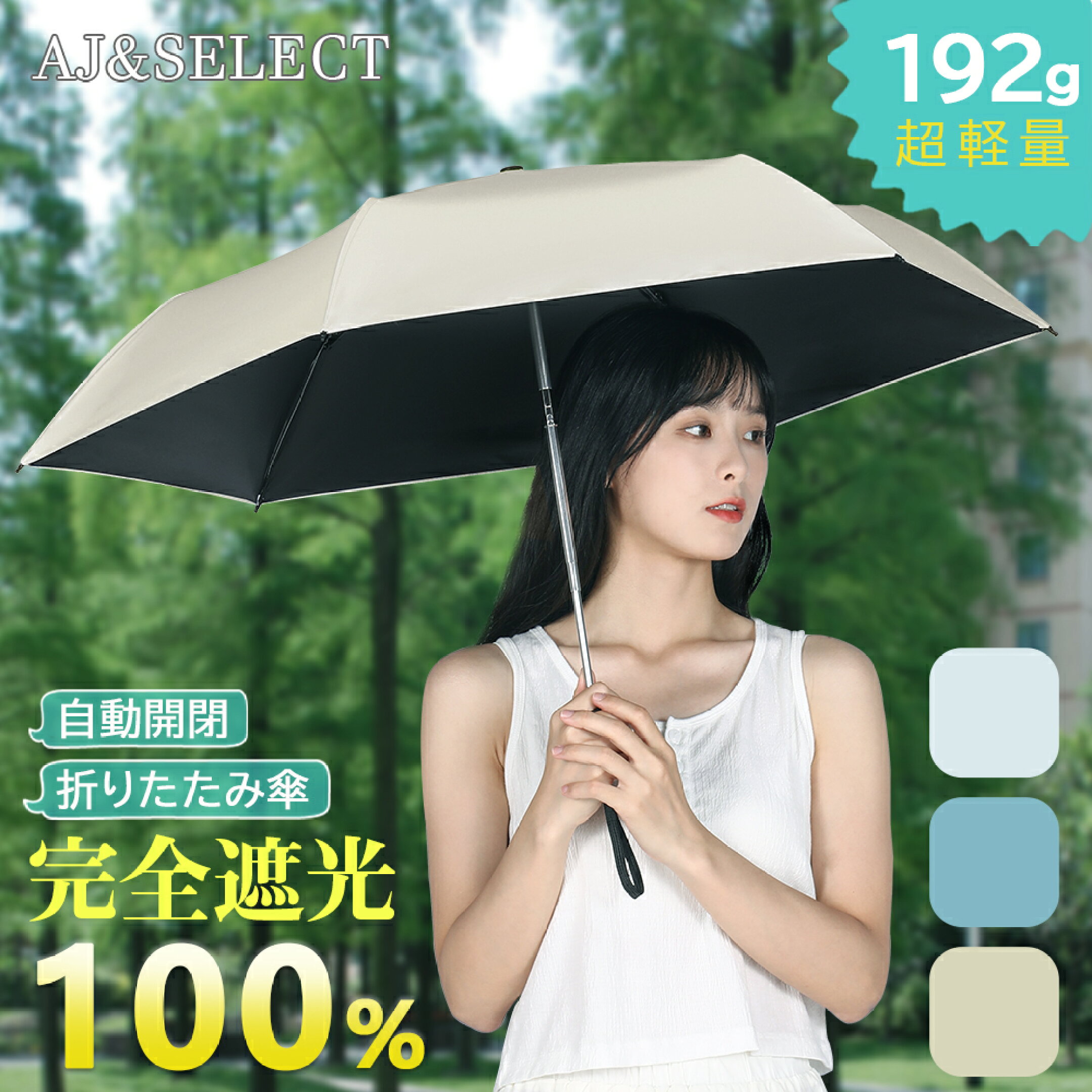 超軽量への新発想 「遮光遮熱」と「コンパクト」どちらも叶える日傘 AJ&SELECT レディース プレゼント 雨傘 梅雨《在庫一掃セール 3,180円→2,680円》【楽天1位 超軽量&自動開閉】 日傘 折りたたみ 完全遮光 100% UVカット 率 軽量 自動開閉 紫外線 日焼け 対策 ワンタッチ 6本骨 傘 晴雨兼用 遮光 遮熱 撥水 100 丈夫 コンパクト 通勤 通学 涼しい 可愛い おしゃれ かさ 折り畳み