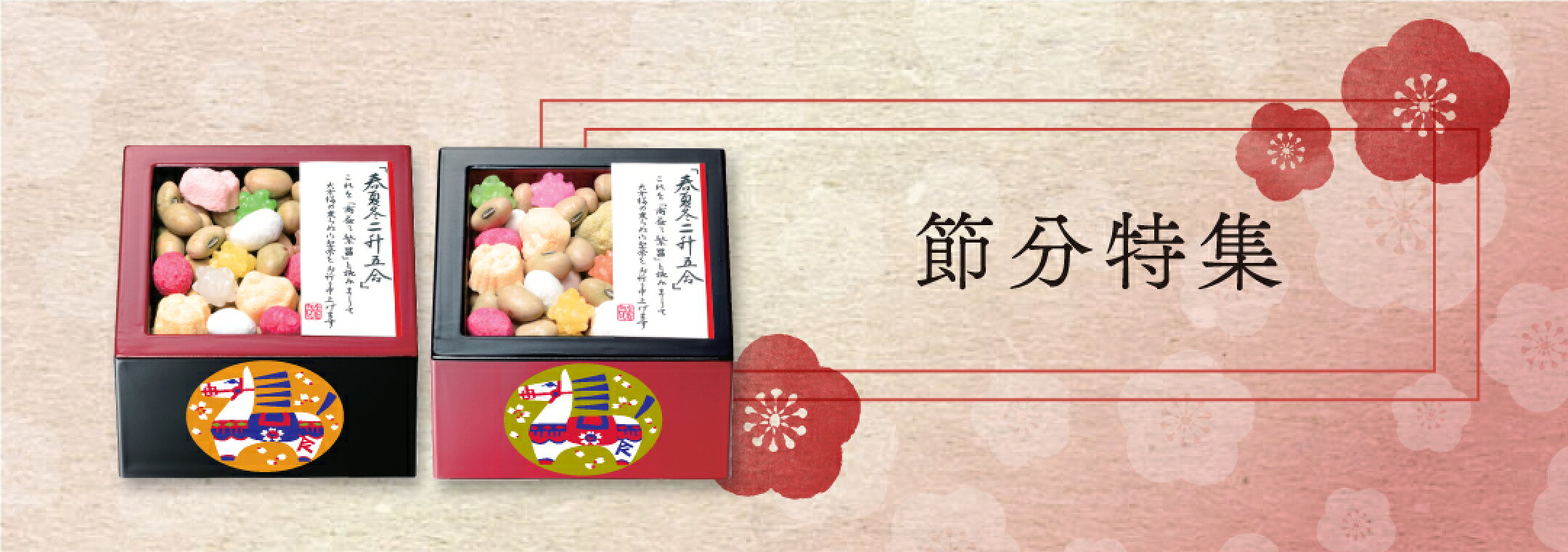 【節分】干支枡(赤・黒 2色セット).<銀座あけぼの 福豆 豆まき 午 大豆 福升 鬼 金平糖>