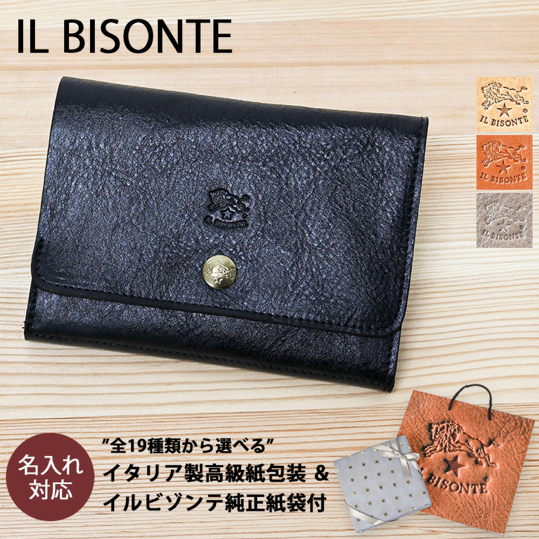 【名入れ可有料】 イルビゾンテ IL BISONTE 二つ折り財布 小銭入れ付 Cestello メンズ レディース SBW069PV0001 ブラック キャメル トルトラ ナチュラル レザー ウォレット