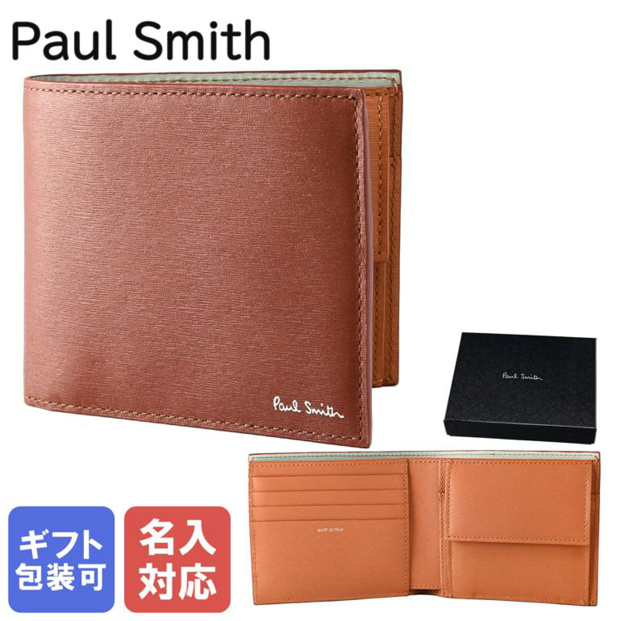 【名入れ可有料】 ポールスミス Paul Smith 二つ折り財布 ミニクーパー メンズ ブラック 4833 LMINNC 79 英国 Made in ITALY ウォレット 折財布 名前入れ 父の日 【スペシャルラッピング660円(別売り)】