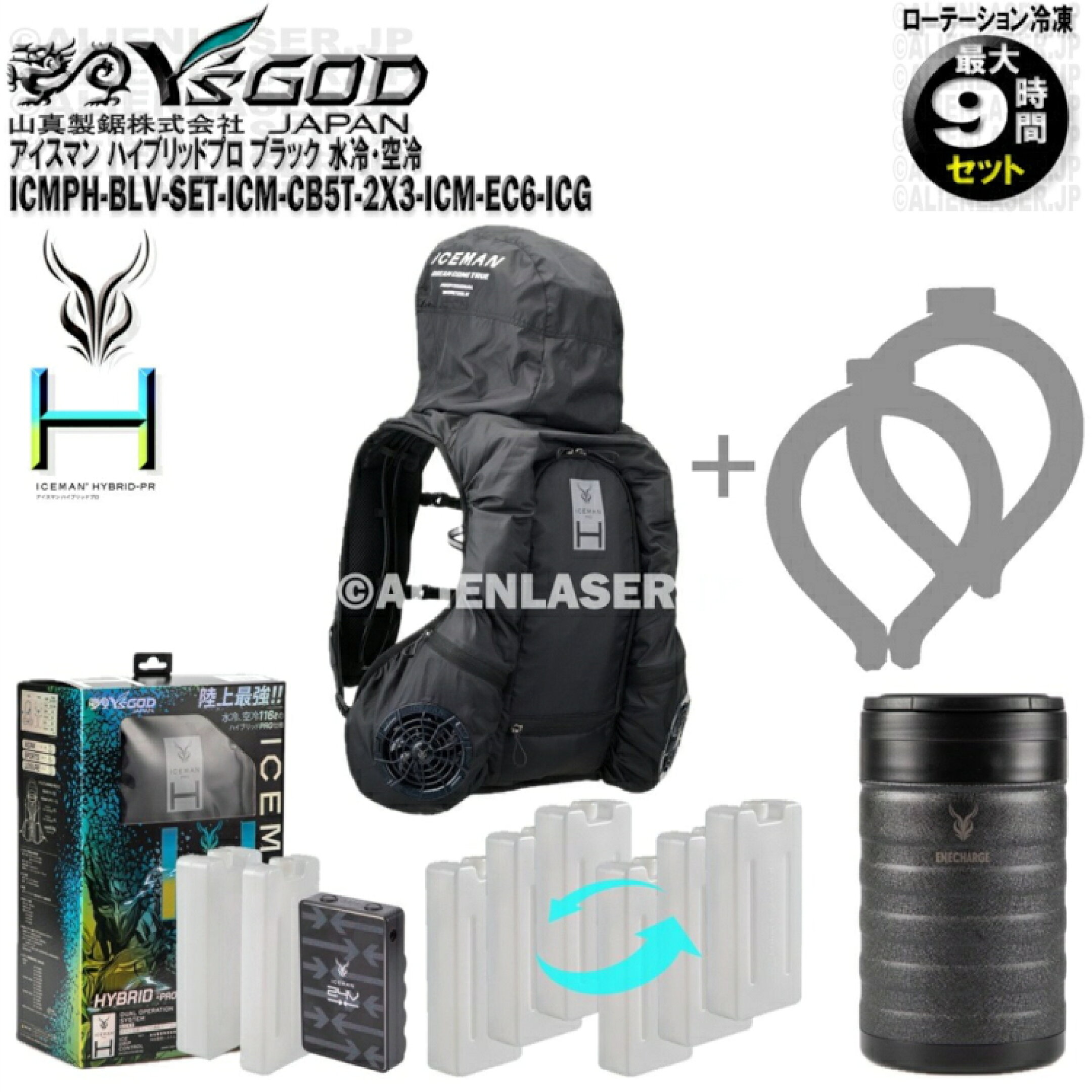 デリバリー バッグ 用 水冷化 キット ユニット アイスマン プラス ICEMAN PLUS-S アイス 水冷 山真 ヤマシン YSGOD ICM-PLS2-SET ブラック 黒 デリバリーバッグ用 本体+バッテリー+充電ケーブル 凍らせた ペットボトル 猛暑 酷暑 熱中症 対策