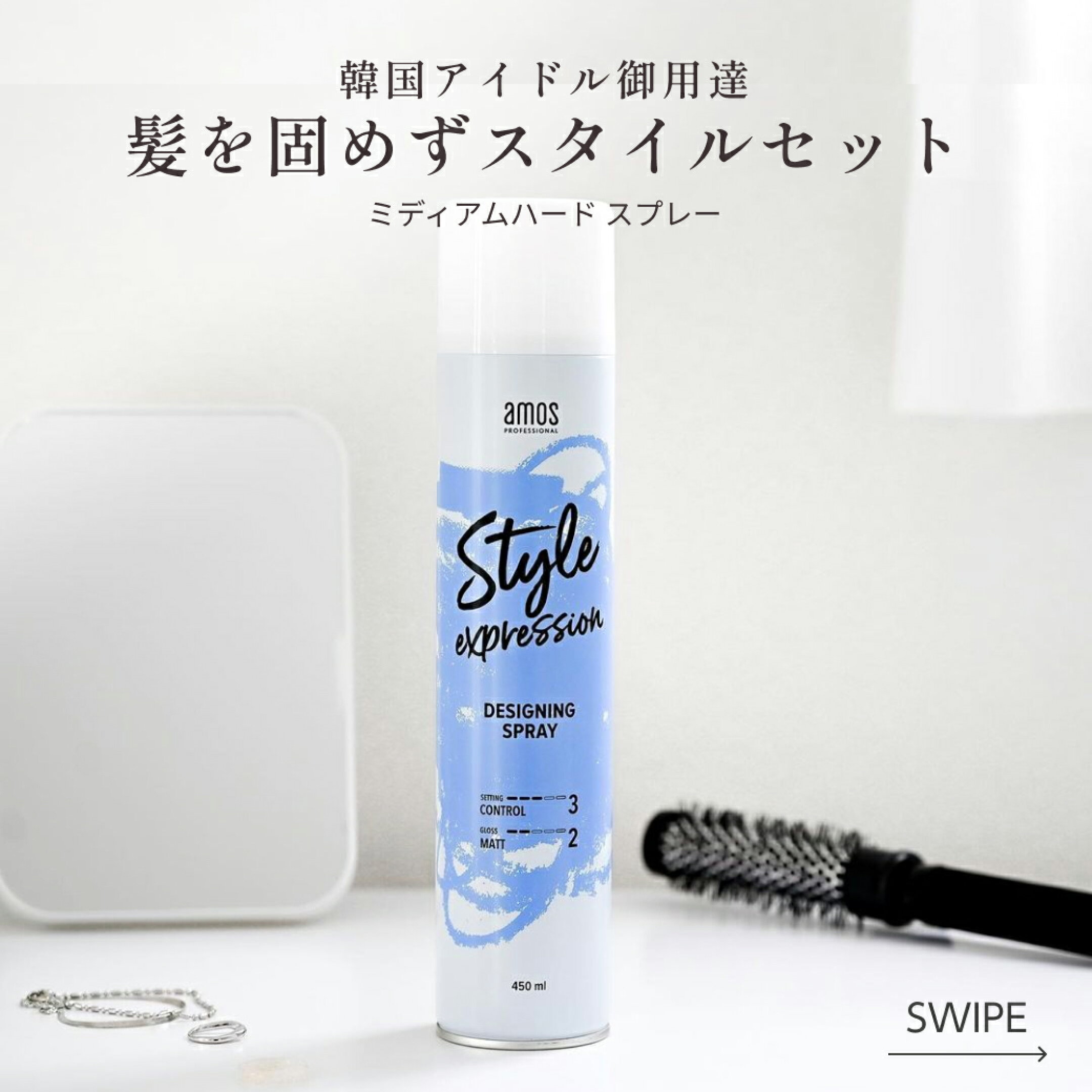 AMOS アモス ヘアスプレー スタイルエクスプレッション デザイニングスプレー 450mL バリバリ パリパリ しない ミディアム ハード スタイリング剤 ダンス 湿気対策 ヘアメイク ユニセックス 男女兼用 ヘアスプレー メンズ 韓国 アモスプロフェッショナル韓国ヘア