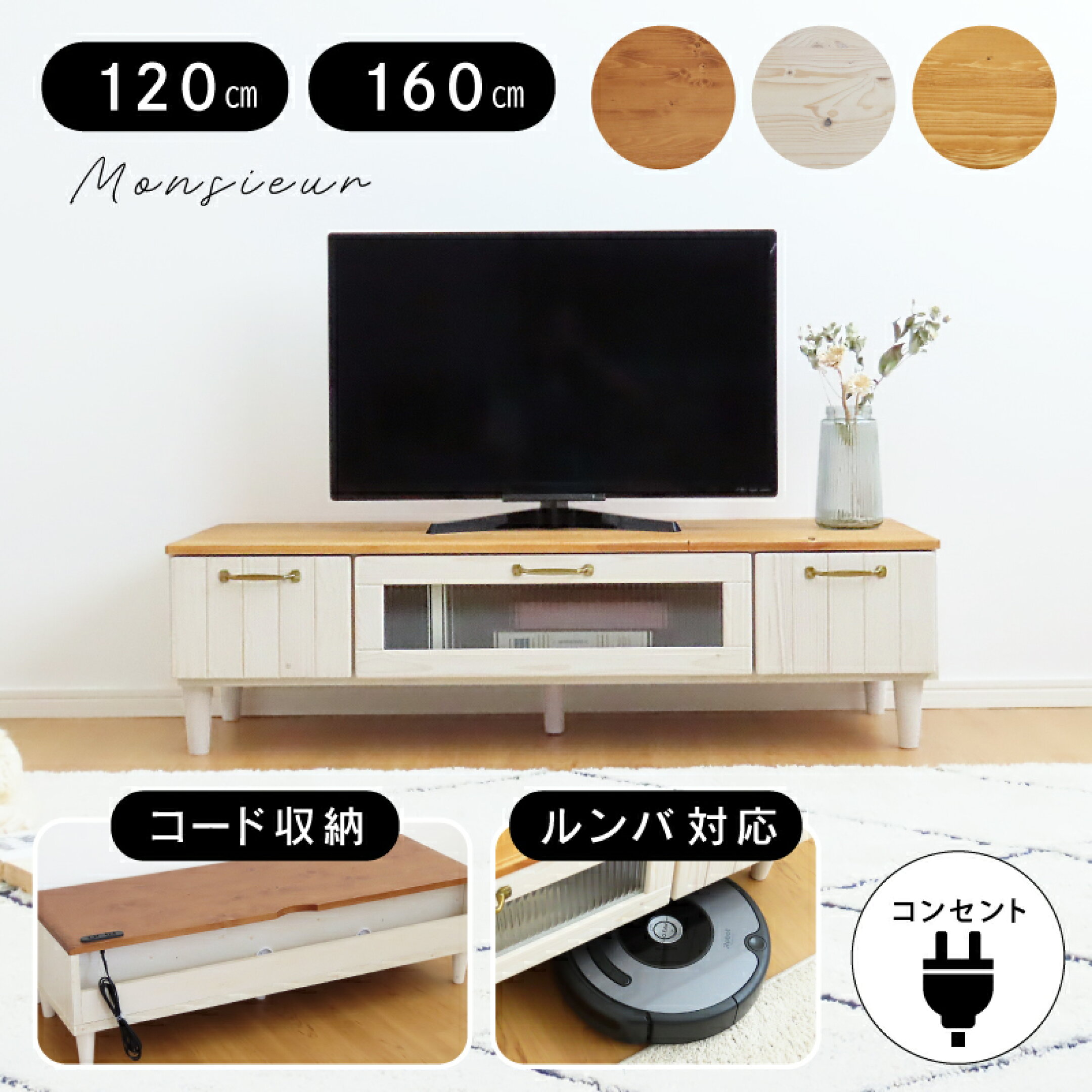 7%値引クーポン!11/10迄 コード収納付き 完成品 テレビボード 120 160 cm 対応 お掃除ロボット コンセント付き おしゃれ 可愛い 一人暮らし 白 かわいい 可愛い 収納 リビング収納 ナチュラル ホワイト ブラウン 北欧 フレンチ家具 テレビ台 ローボード 新生活
