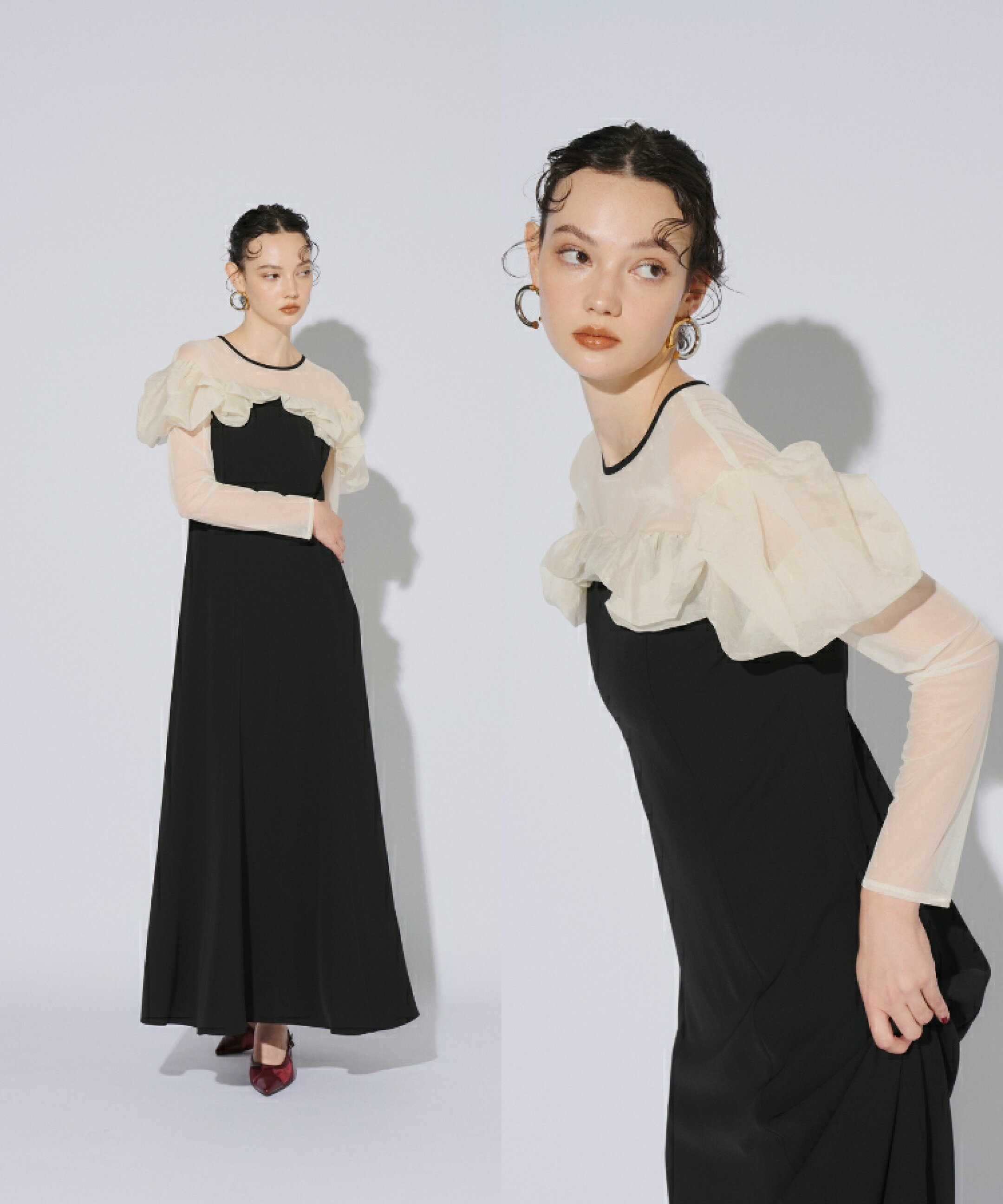 全品1000円OFF_◆クーポン配布中【公式】 ANDRESD アンドレスド 【 glossy multi ruffle dress 】結婚式 ドレス ワンピース 結婚式ワンピース オケージョンドレス パーティードレス フォーマル お呼ばれ 体型カバー 着痩せ