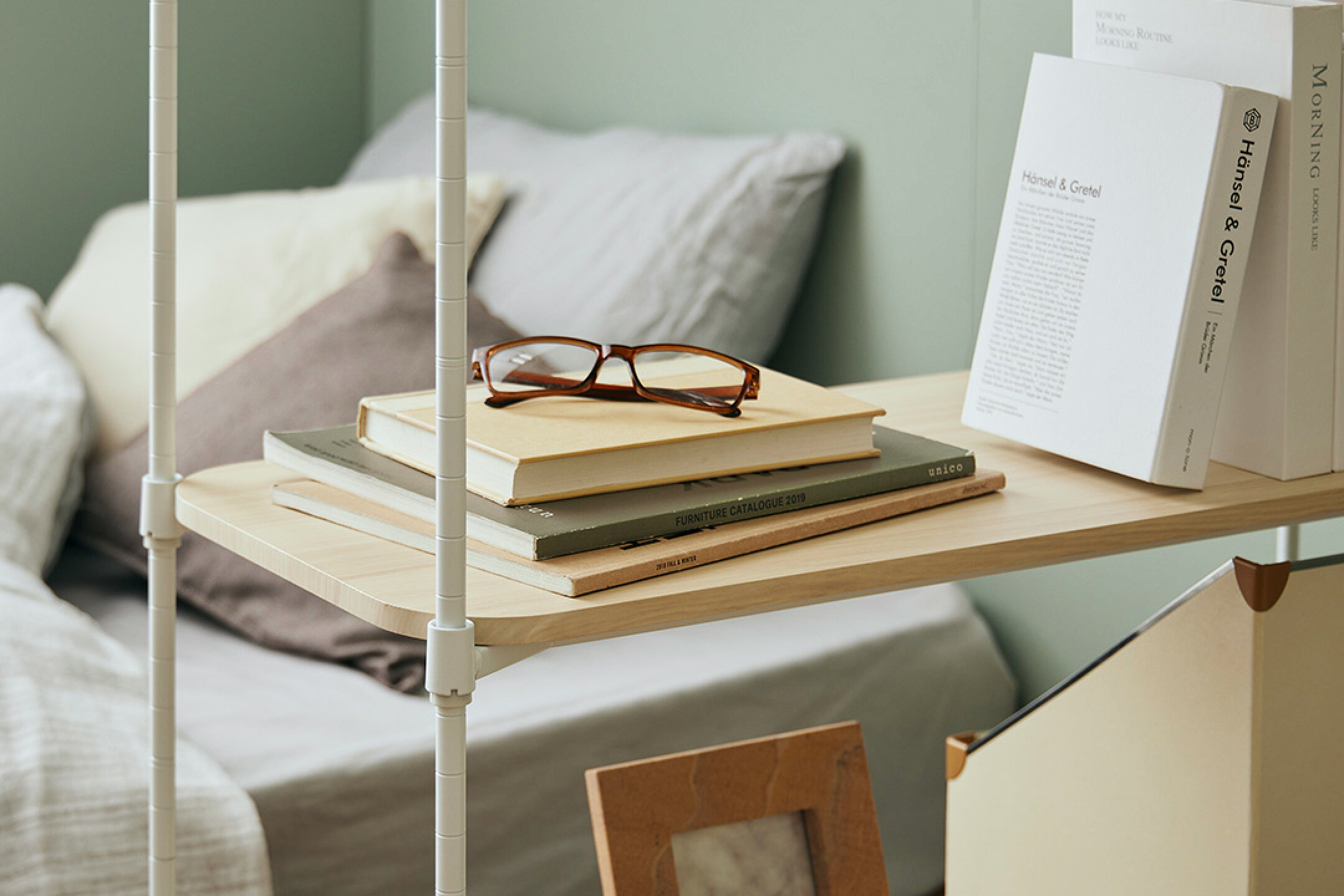 ナチュラルでやわらかな印象のウッドシェルフ