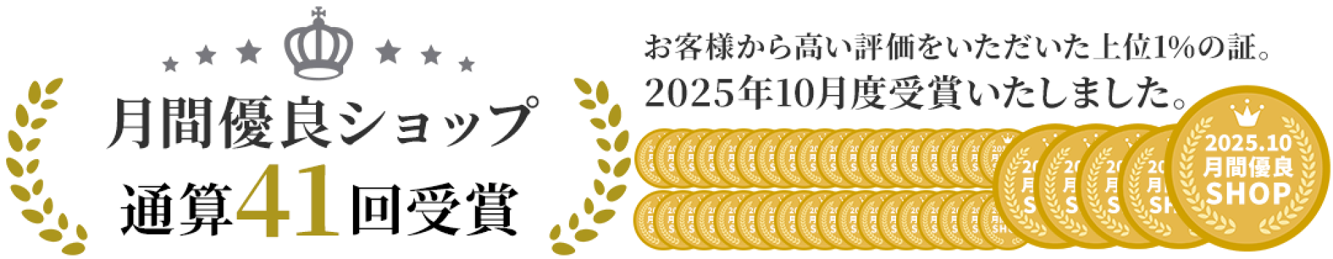 店長 タケモトです。 おかげさまで、このたび「楽天月間優良ショップ」を 通算40回受賞 することができました。 40回という数字は、私たち自身にとっても驚くほど大きな節目であり、長くご愛顧くださったお客様、そして日々お店を支えてくれているスタッフ一人ひとりの努力の積み重ねの結果だと感じています。 いただく温かなレビューの数々も、大きな励みになっております。 これまでご縁をいただいたすべてのお客様に、そして共に歩んできた仲間に、心から感謝申し上げます。 これからも「ここで買ってよかった」「またここで買いたい」と思っていただけるよう、スタッフ一同力を合わせ、より良い商品とサービスをお届けしてまいります。 今後ともどうぞよろしくお願いいたします。