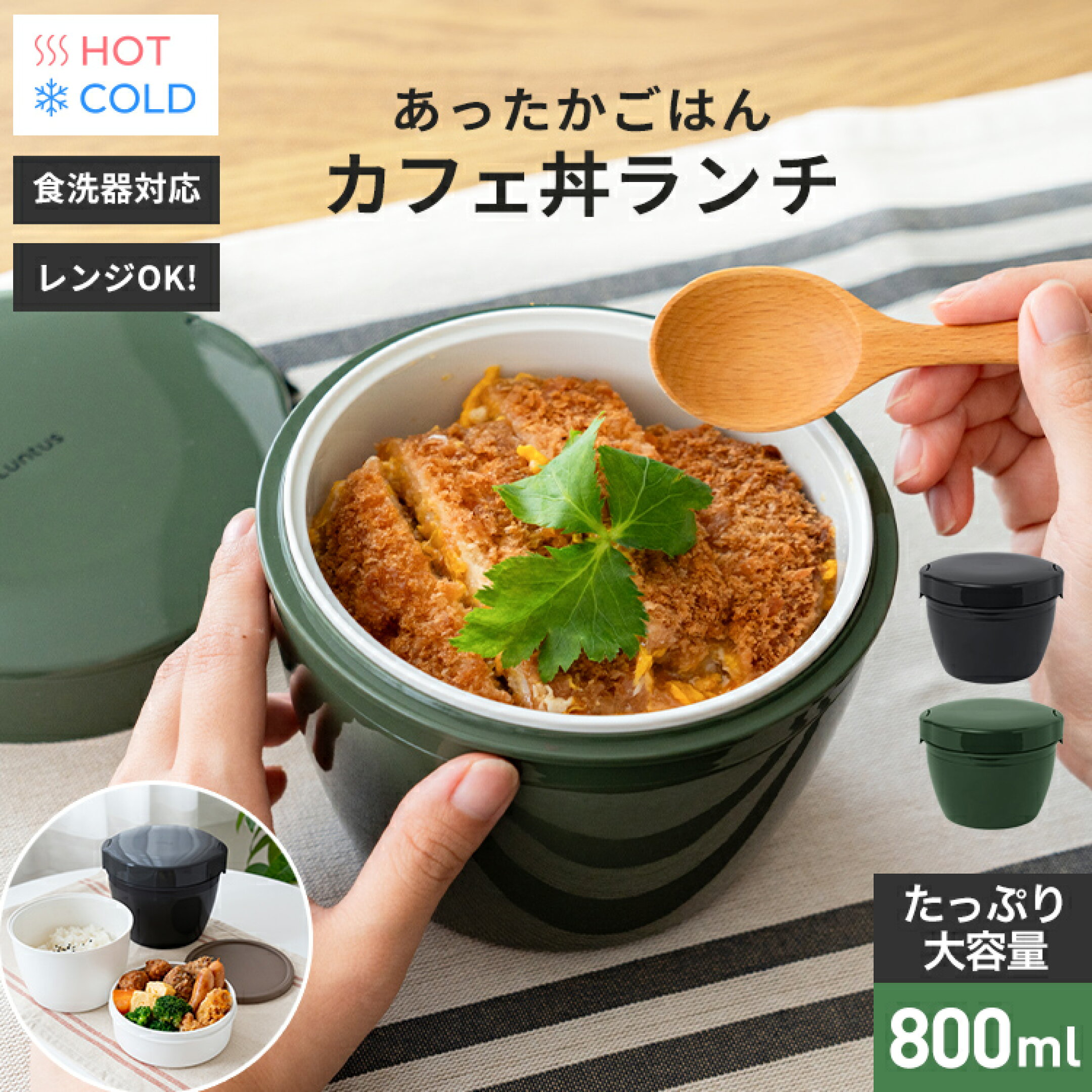 ランキング受賞 弁当箱 保温弁当箱 お弁当箱 丼 保温 大容量 軽量 レンジ対応 食洗器対応 冷蔵 抗菌 2段 ランチボックス ランチジャー 女子 男子 女性 男性 おしゃれ 入園入学 新生活 たっぷり 丼ぶり 【 アスベル ASVEL カフェ丼 保温弁当箱 HLB-CD800 保温バッグ セット 】