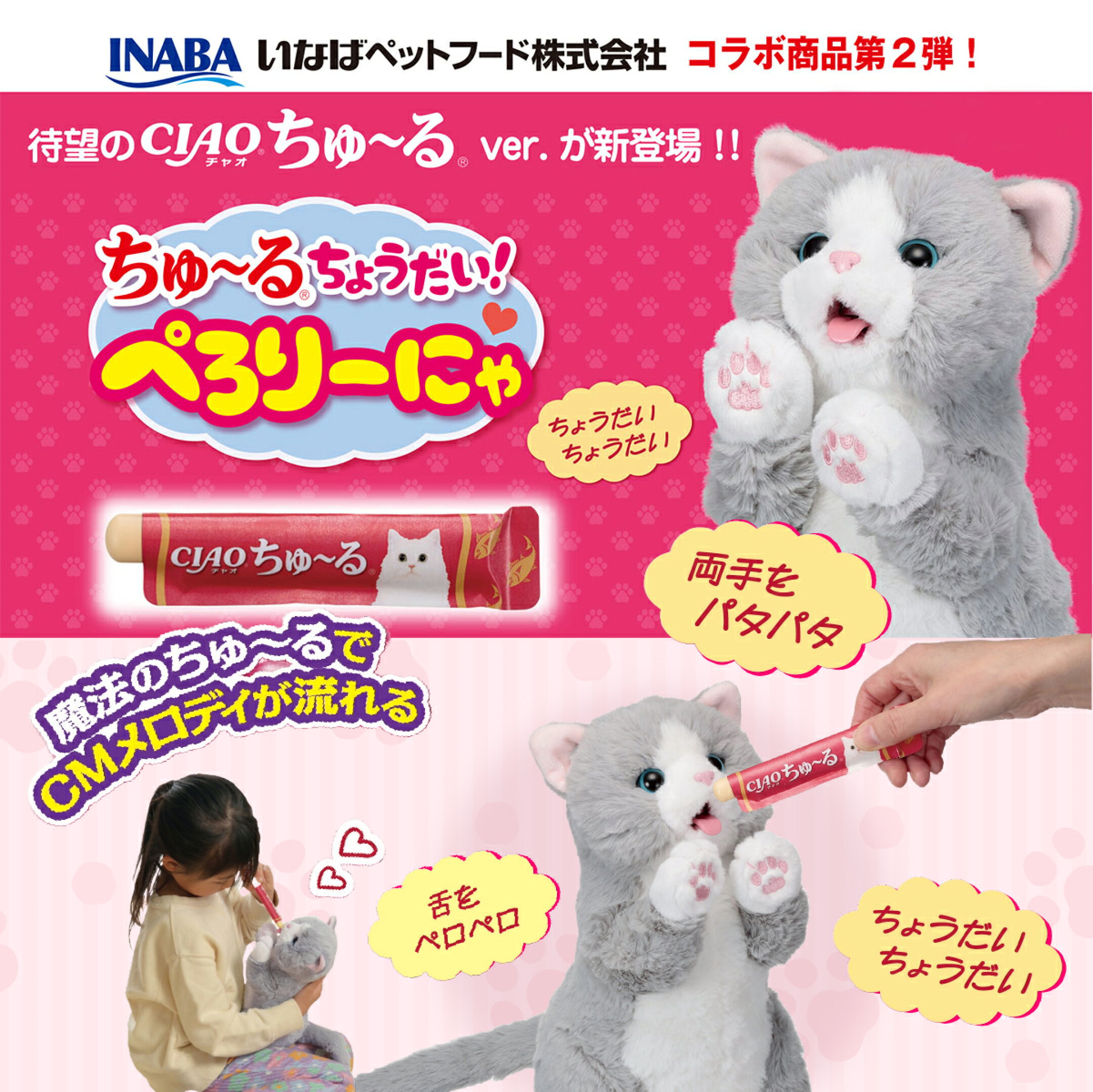 ちゅ〜るちょうだい!ぺろりーにゃ いなば 動く 猫 ネコ 猫型ロボット 動くぬいぐるみ おもちゃ ちゃおちゅ?る ちゅーる いなば 疑似 ペット 癒し系 ペットロス 誕生日 子供 高齢者 プレゼント ギフト p10