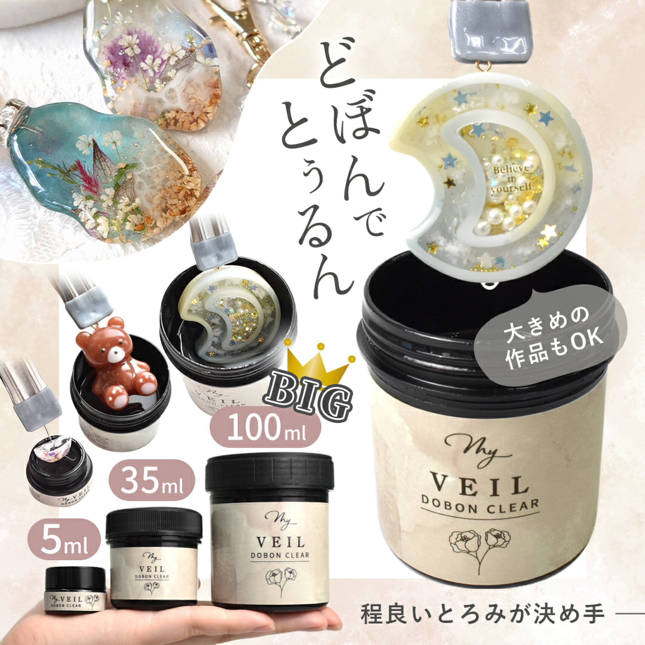 どぼん と レジン コーティング液 MY VEIL マイヴェール クリア 5ml 35ml 100ml 詰め替え 20ml ■ MYmama コーティング剤 レジン液 高品質 コスパ 安い 大容量 UV LED コート剤 トップコート 仕上げ ツヤ出し アクセサリー レジンクラフト ■