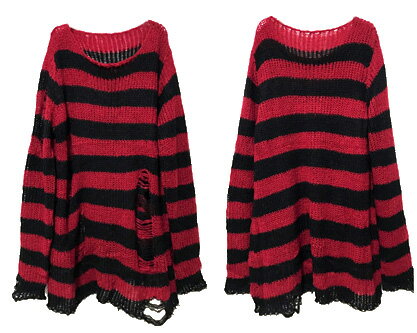 ダメージ入り ボーダーニット 赤×黒 ゴシックパンク メンズ レディース ユニセックス 男女兼用 フリーサイズ ヴィジュアル系 セーター 地雷系 コスプレ