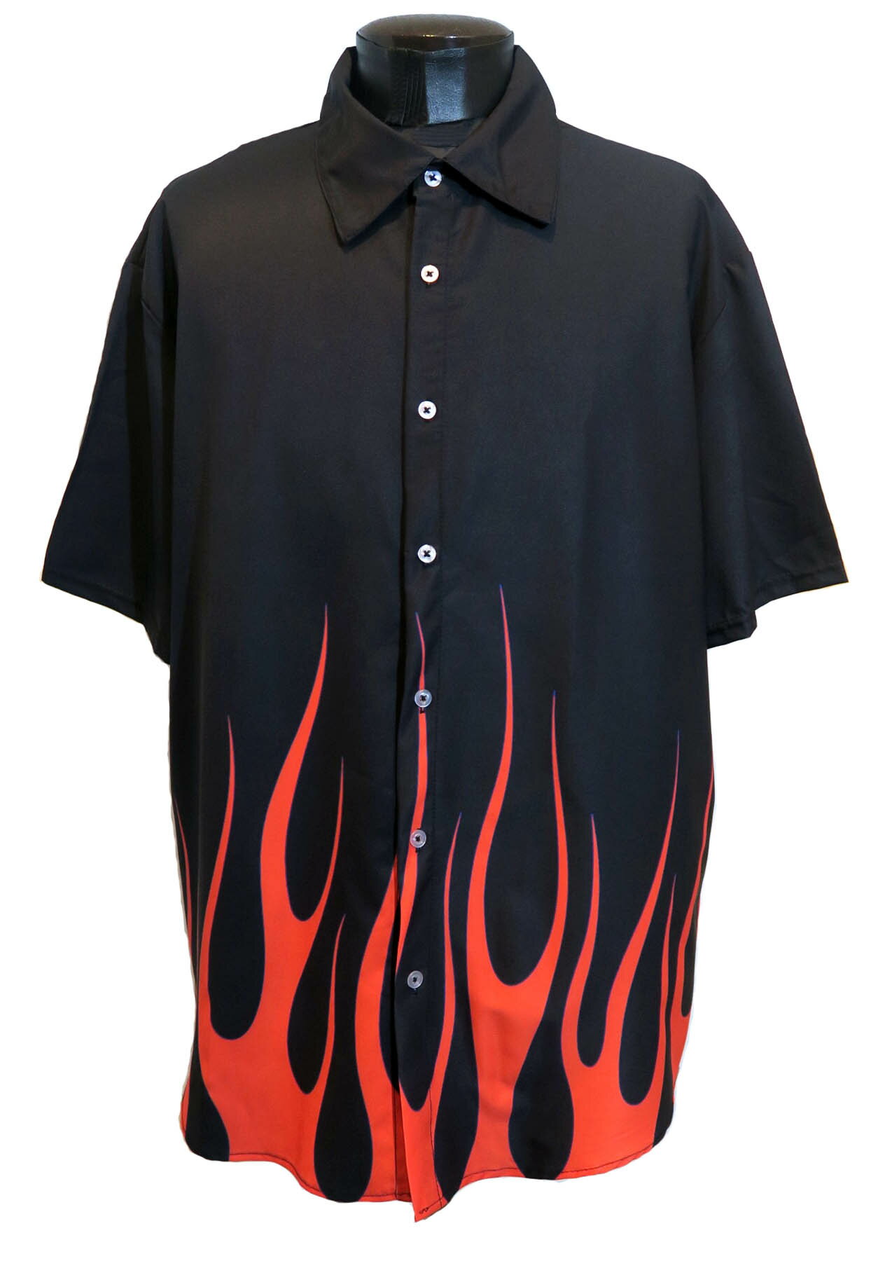 ファイヤーパターン 炎柄 シャツ 半袖 黒 青 ブルー メンズ オーバーサイズ ビッグサイズ 火の玉 アメリカン バイカー パンク ロック ヴィジュアル系 ウエスタン カウボーイ ロカビリー ヒップホップ
