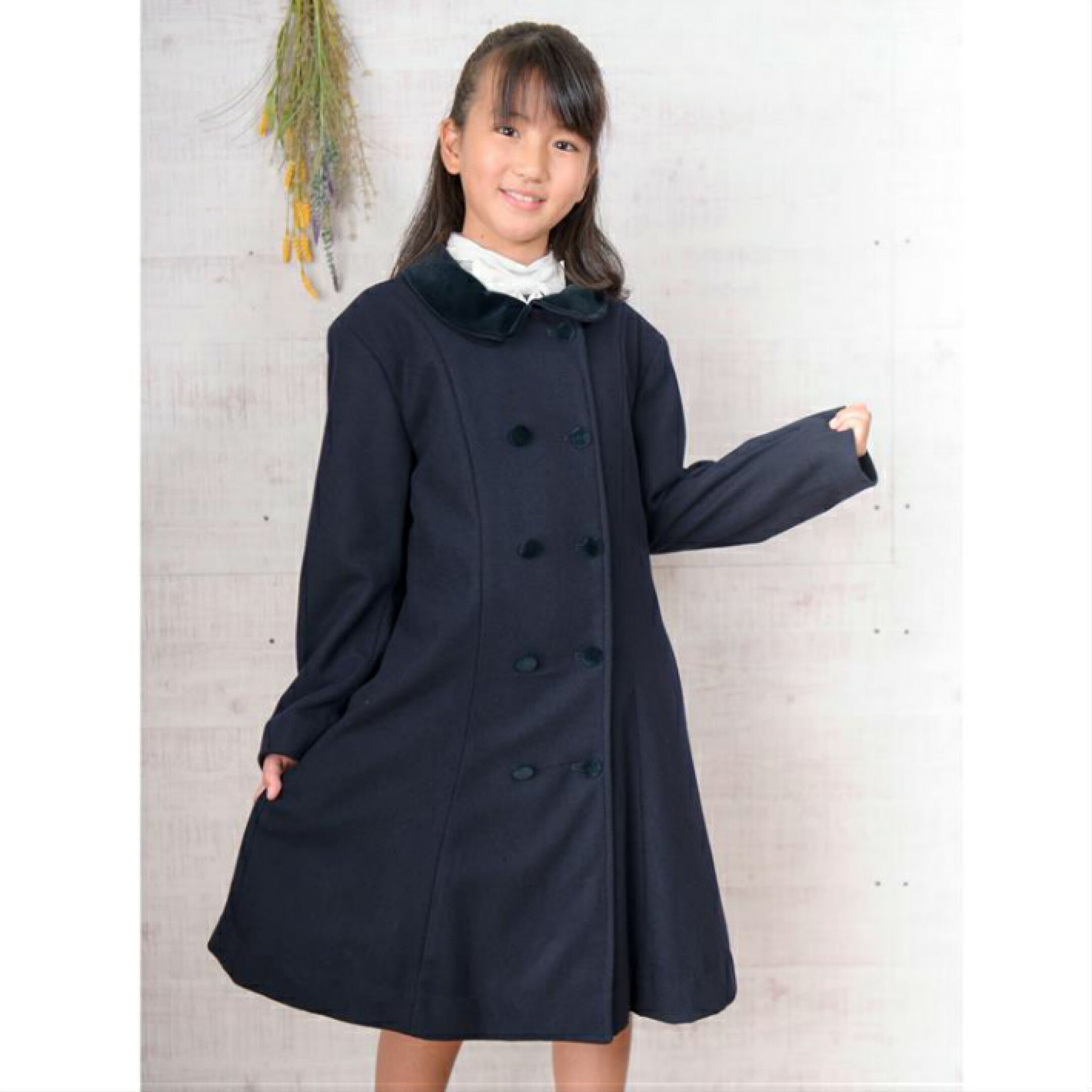 Seek 【Pico prima】女子 子供ウールコート SS17302ベルベット襟で上品なダブルウールコートスクールコート紺 ネイビー 卒園式 入学式 卒業式 発表会 結婚式 子供フォーマル コート