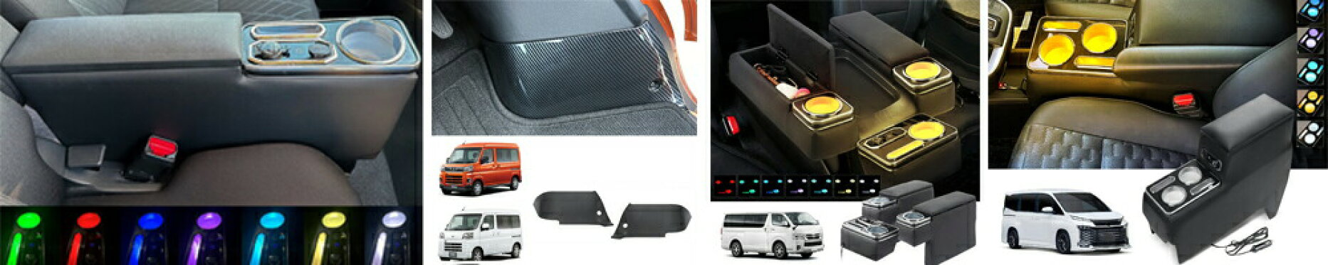 【お買い物マラソン 4/11限定 ポント2倍UP】ハイエースDX/レジアスDX専用 アームレスト 呼吸ランプ 七色変換 センターコンソール マルチユースシートバックコンソールに対応 小物入れ収納ボックス付 肘掛け e2