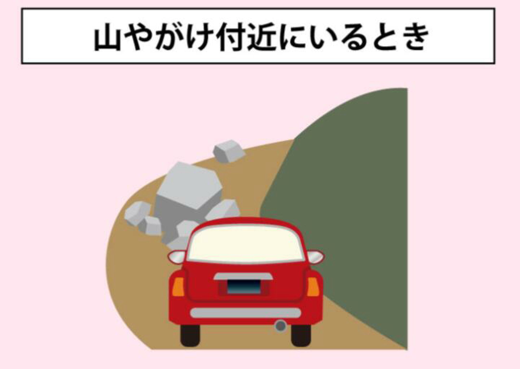 落石やがけ崩れに注意し、できるだけその場から離れましょう。