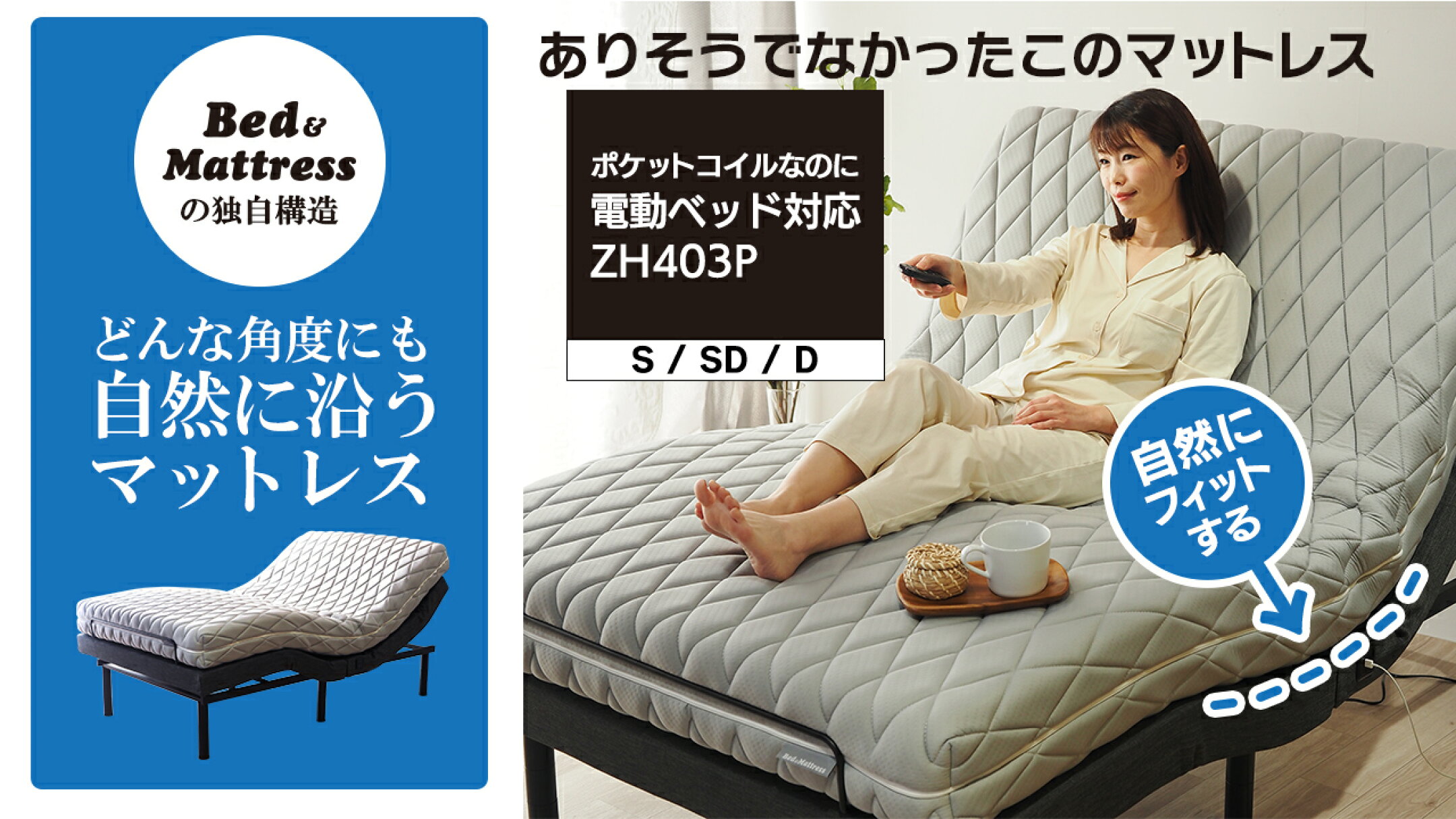 ベッドマットレス付き【New】ポケットコイル マットレス付き 電動ベッド シングル・セミダブル・ダブル G-FREE004 アジャスタブルベッド ZH403P 電動リクライニング 選べる開梱設置サービス