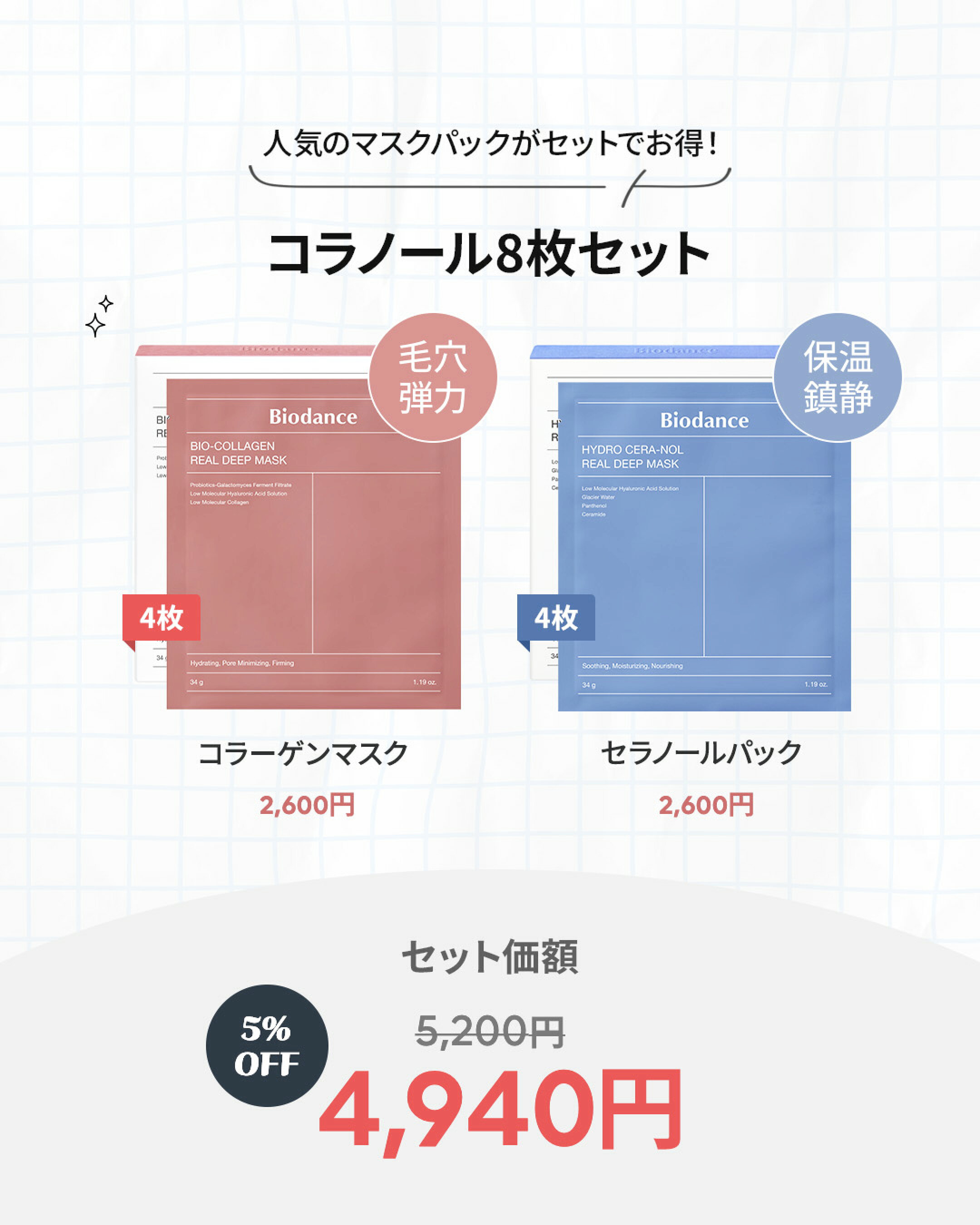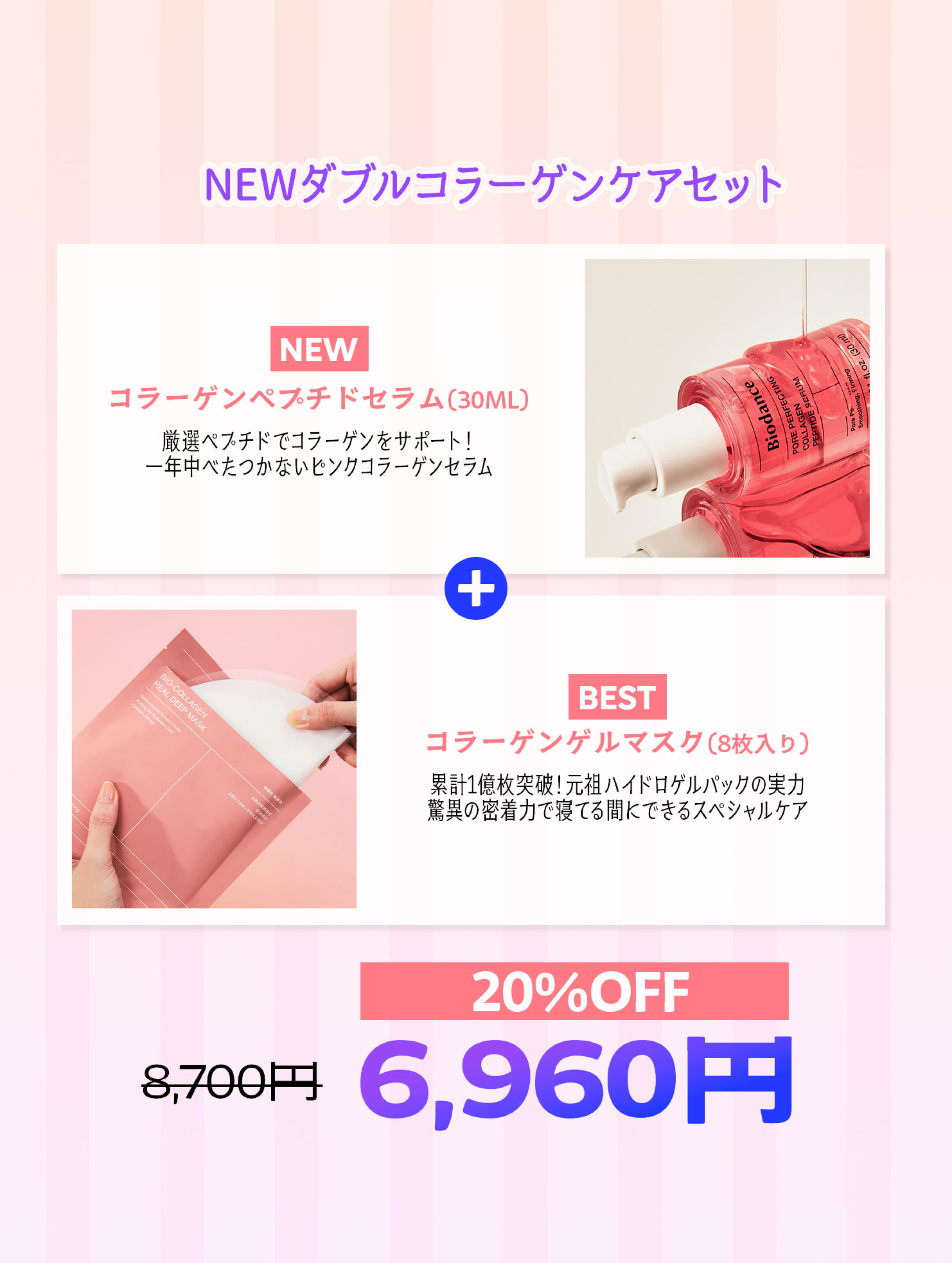 NEWダブルコラーゲンケアセット(コラーゲンパック(8枚)/ コラーゲンペプチドセラム(30ml))/ (低分子コラーゲン/ペプチド/ べたつかない/ 弾力 /毛穴ケア/敏感肌 / 潤い)