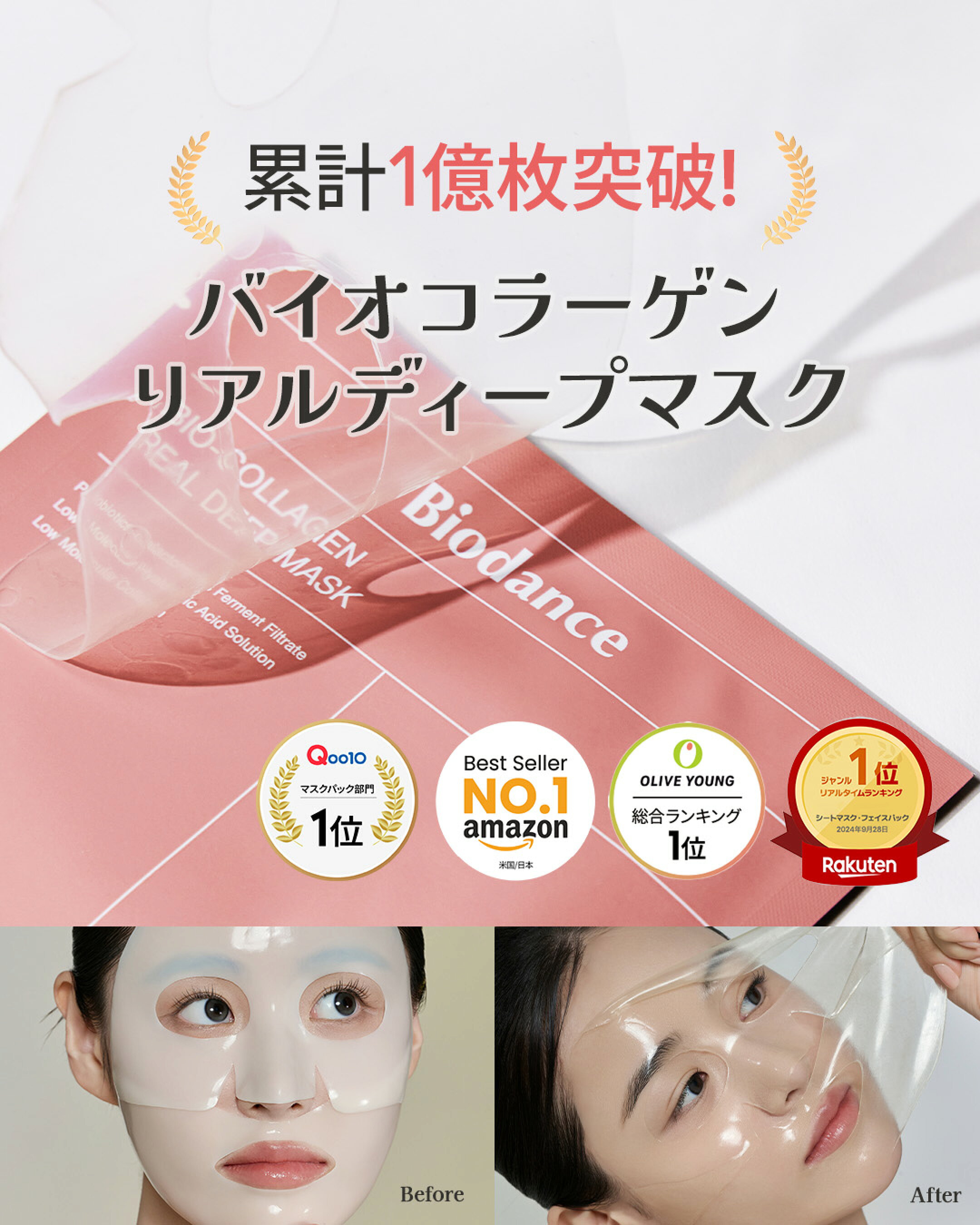 【バイオダンス公式】バイオコラーゲンリアルディープマスク(4枚入り) 高保湿 弾力 毛穴 ツヤ肌ケア アンプル ハイドロゲル べたつきかない 韓国コスメ マスクパック 潤い