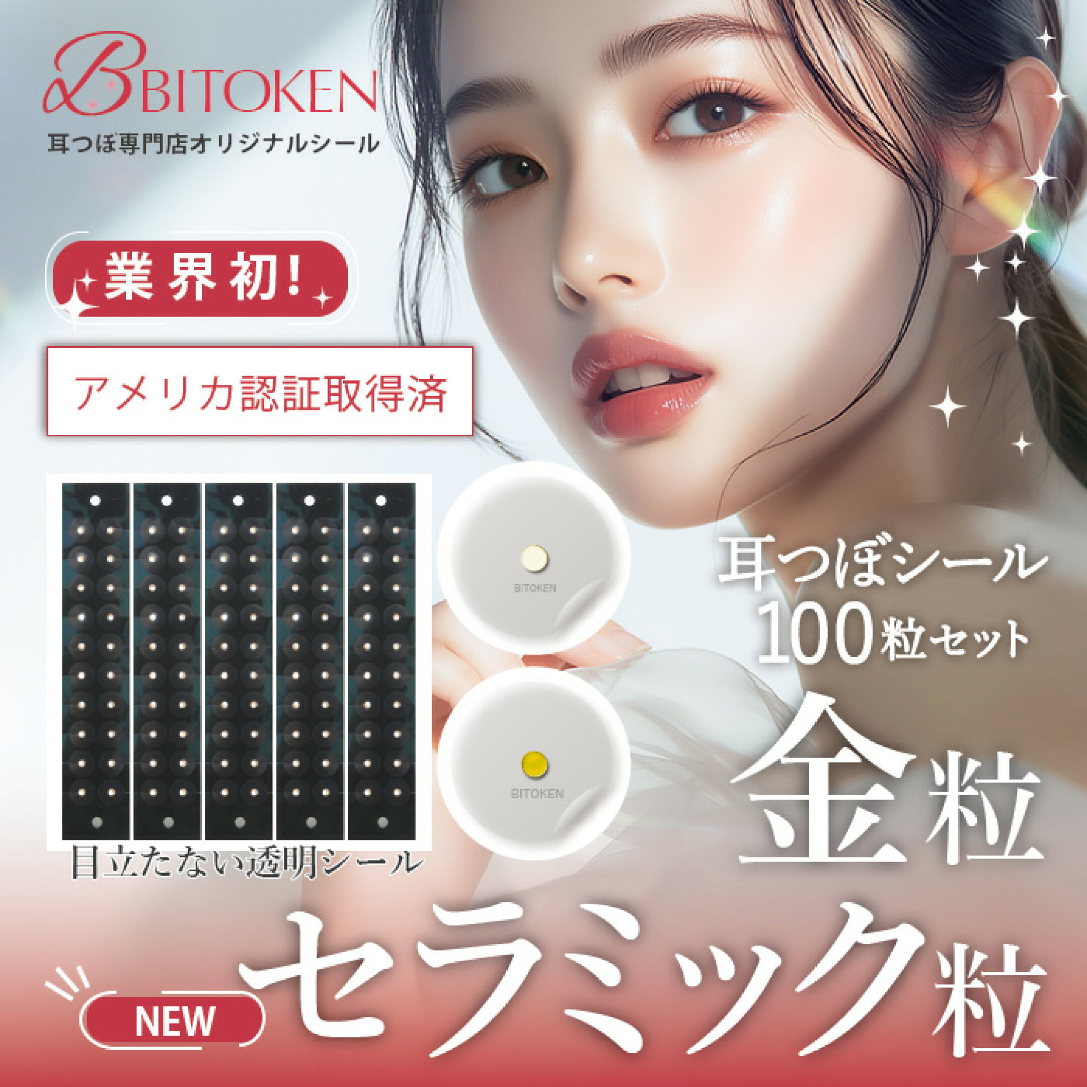 アメリカ認証【耳つぼシール セラミック粒・金粒100粒/20粒>医療用シール オリジナル耳つぼシール BITOKEN【送料無料】<耳つぼ説明書付き>びとけん BITOKEN Ear Art Diet 耳つぼダイエット 耳つぼジュエリーにもおすすめ