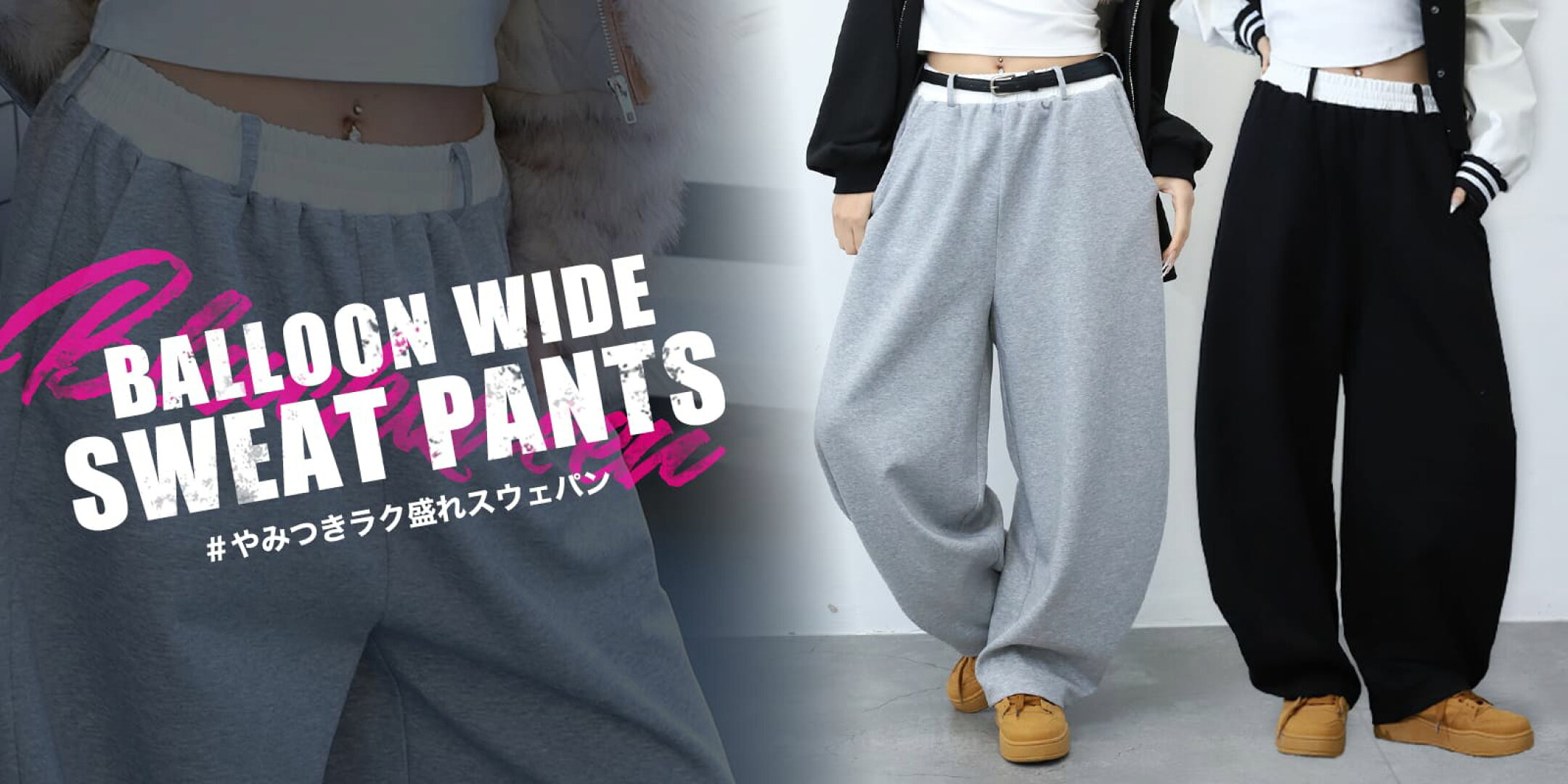 ギャル ギャル服 ファッション パンツ ボトムス パンツ レディース カーブパンツ ウエスト 配色 デザイン バルーン スウェット シルエット トレンド ストリート ブラッククイーン 251212