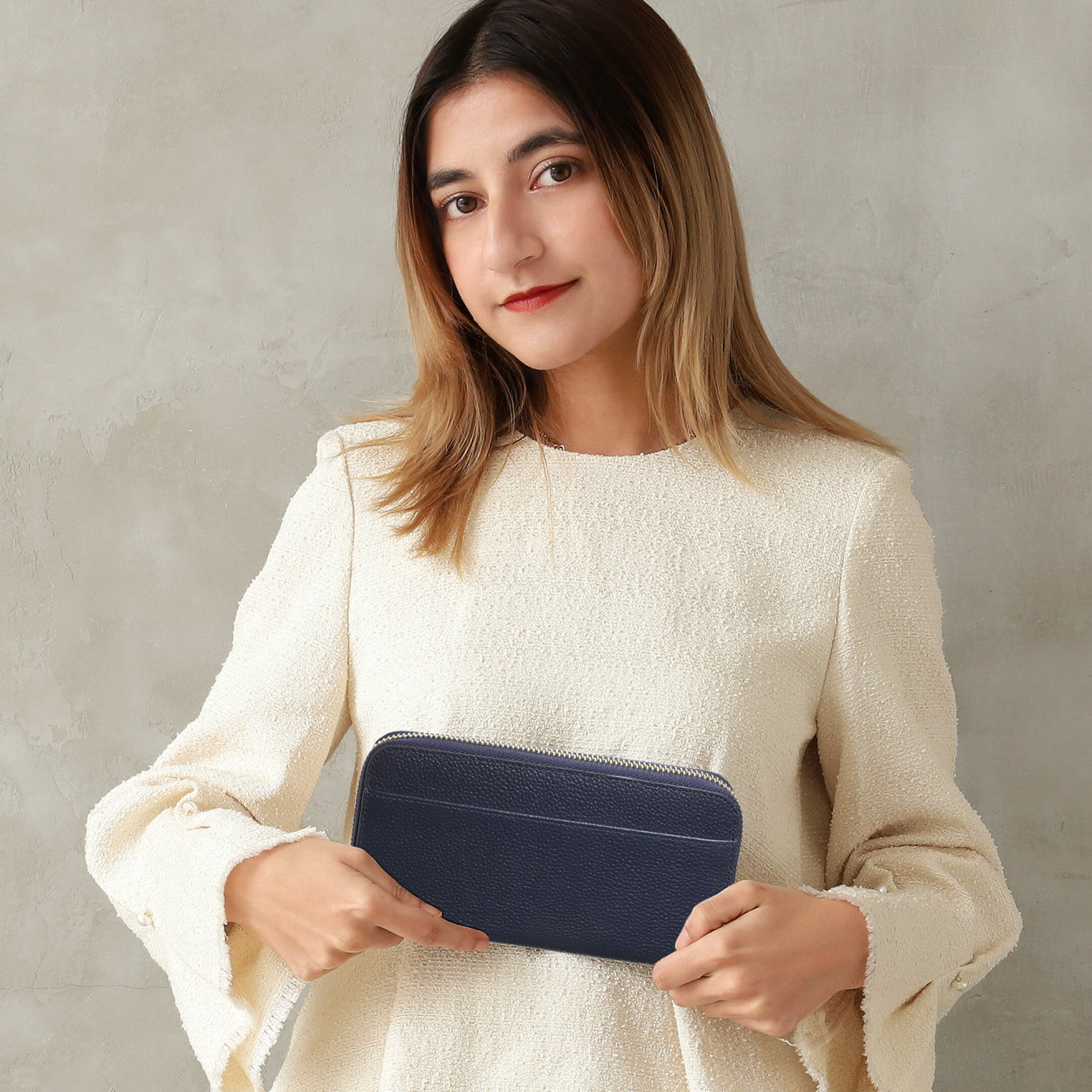 【 独自の縦入れカード設計がクセになる 】 キャッシュレス時代だからこそ、カード使用がメインの財布を開発しました。縦にカードを入れるため、視認性が高くどこにどのカードが入っているかわかりやすいだけでなくネイルをされている女性にも支持されています。また、クレジットカード情報を盗み取られるスキミングブロックの機能も搭載しているので、セキュリティもバッチリの財布となっています。 【 細部までの徹底したこだわり 】 革自体の耐久性が高くてもファスナーが壊れてしまったた本末転倒ということでファスナーは日本製のYKKを採用、小銭入れはファスナーレスにしたことにより会計時はスマートに使用できます。もちろん設計にこだわったので小銭の落下はありません。