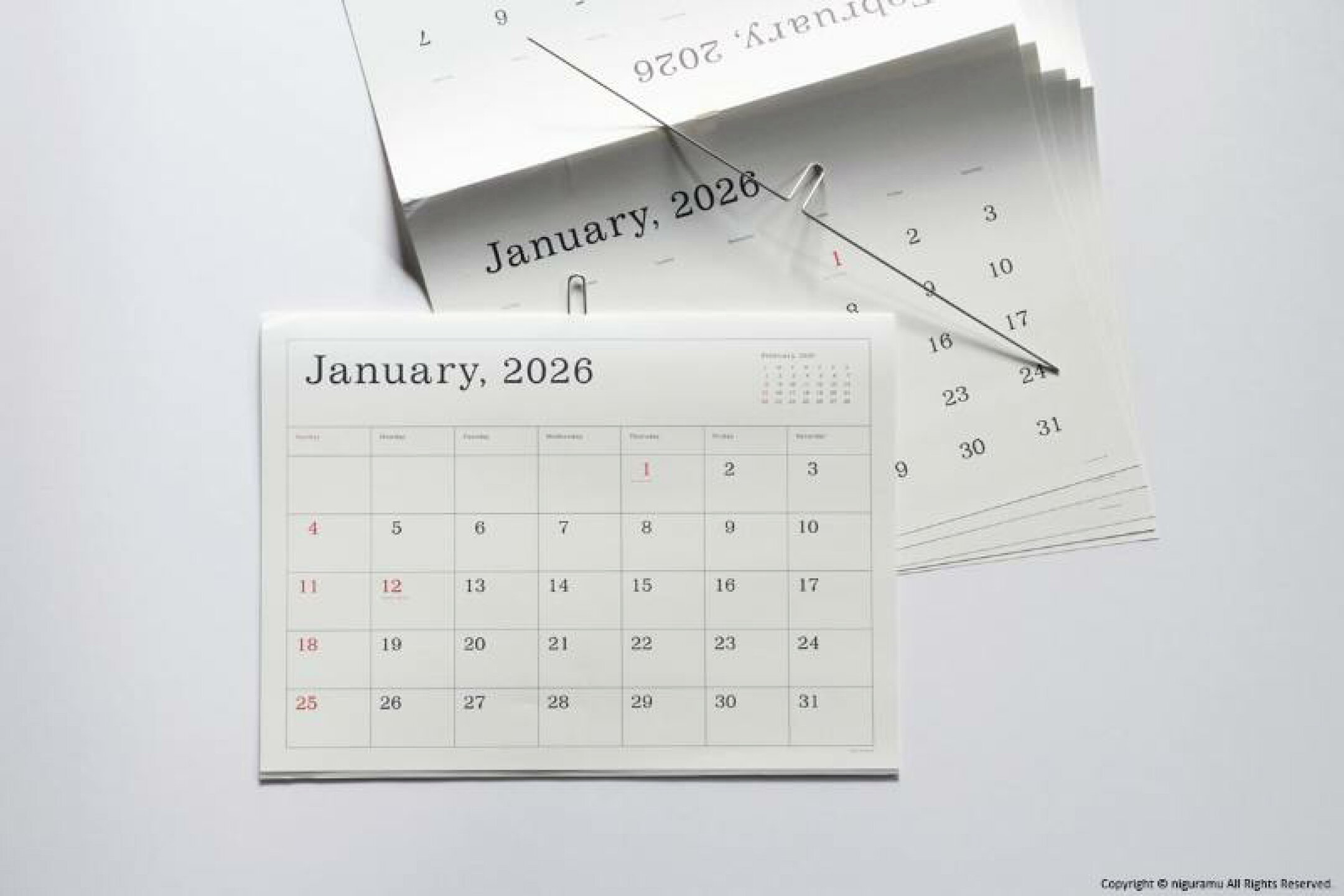 2026 葛西薫カレンダー, 罫線あり【ANDO GALLERY/アンド—ギャラリー】
