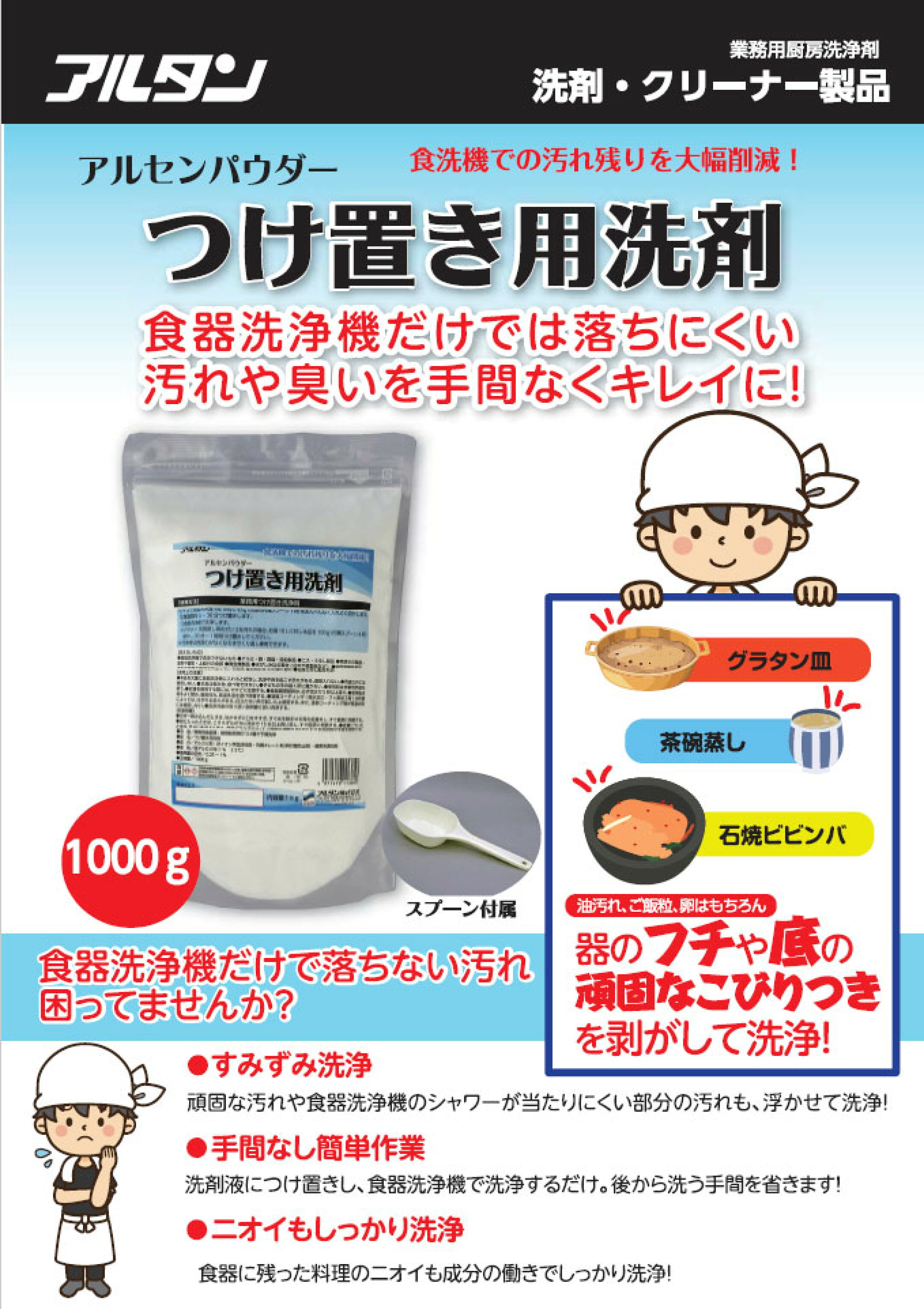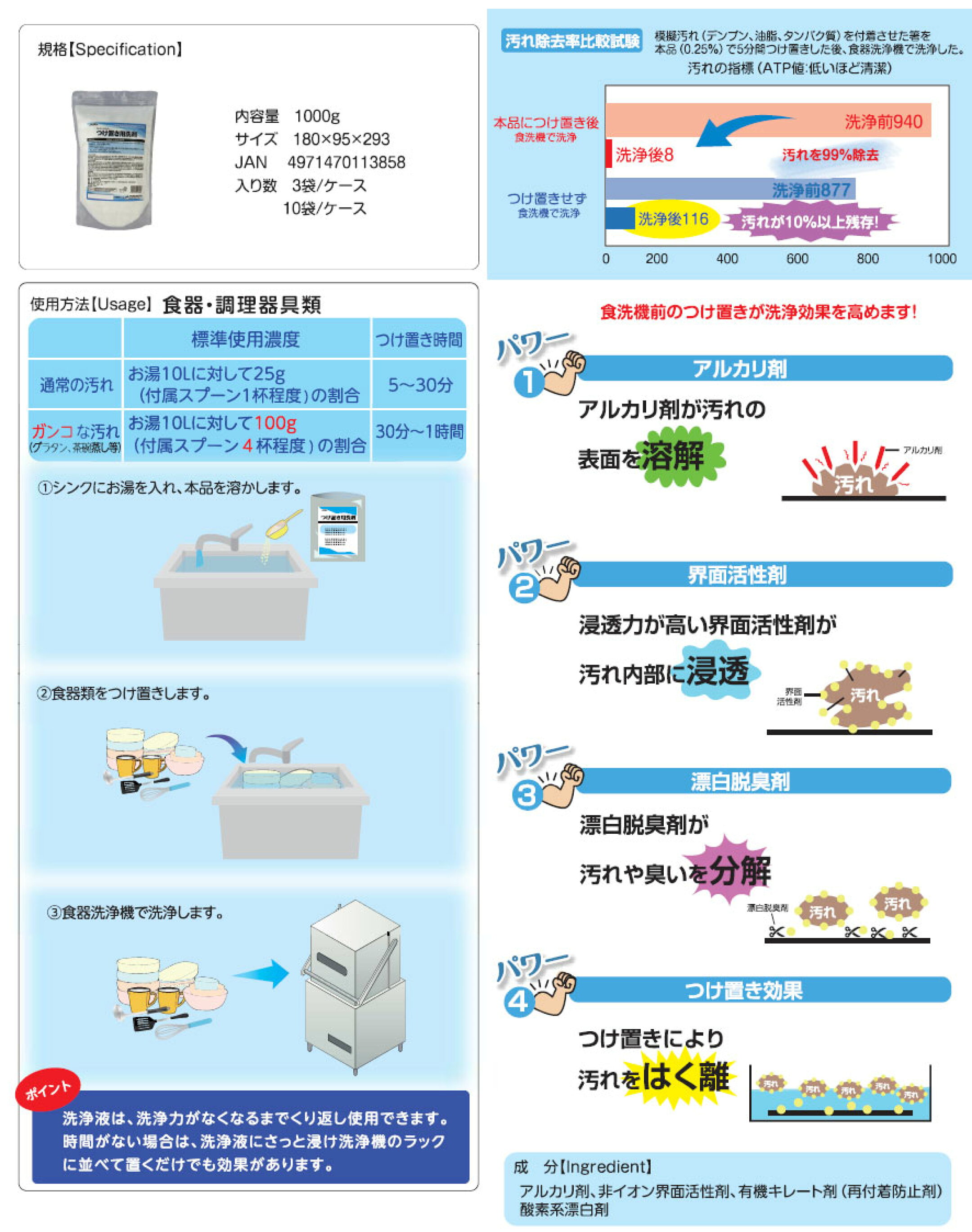 ●予洗いつけ置き洗浄剤[アルカリ性 ][粉末 ] 食洗機での汚れ残りを大幅に削減できるつけ置き洗剤です。