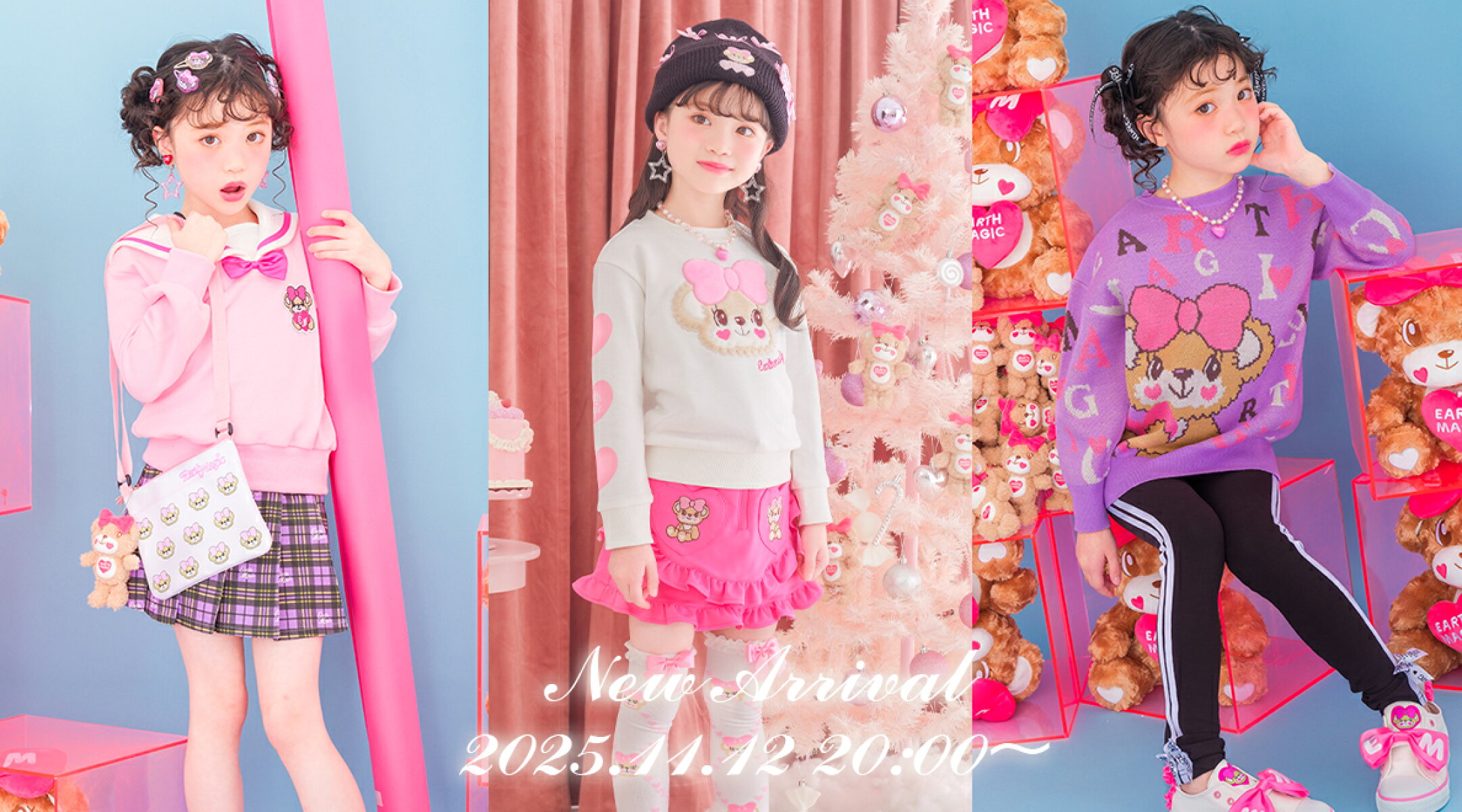 【EARTHMAGIC正規取扱店】アースマジック 2025冬 ダイヤ柄ニットプルオーバー 女児 女の子 子供服 キッズ トップス 100cm 110cm 120cm 130cm 140cm ピンク サックス 水色 セーター