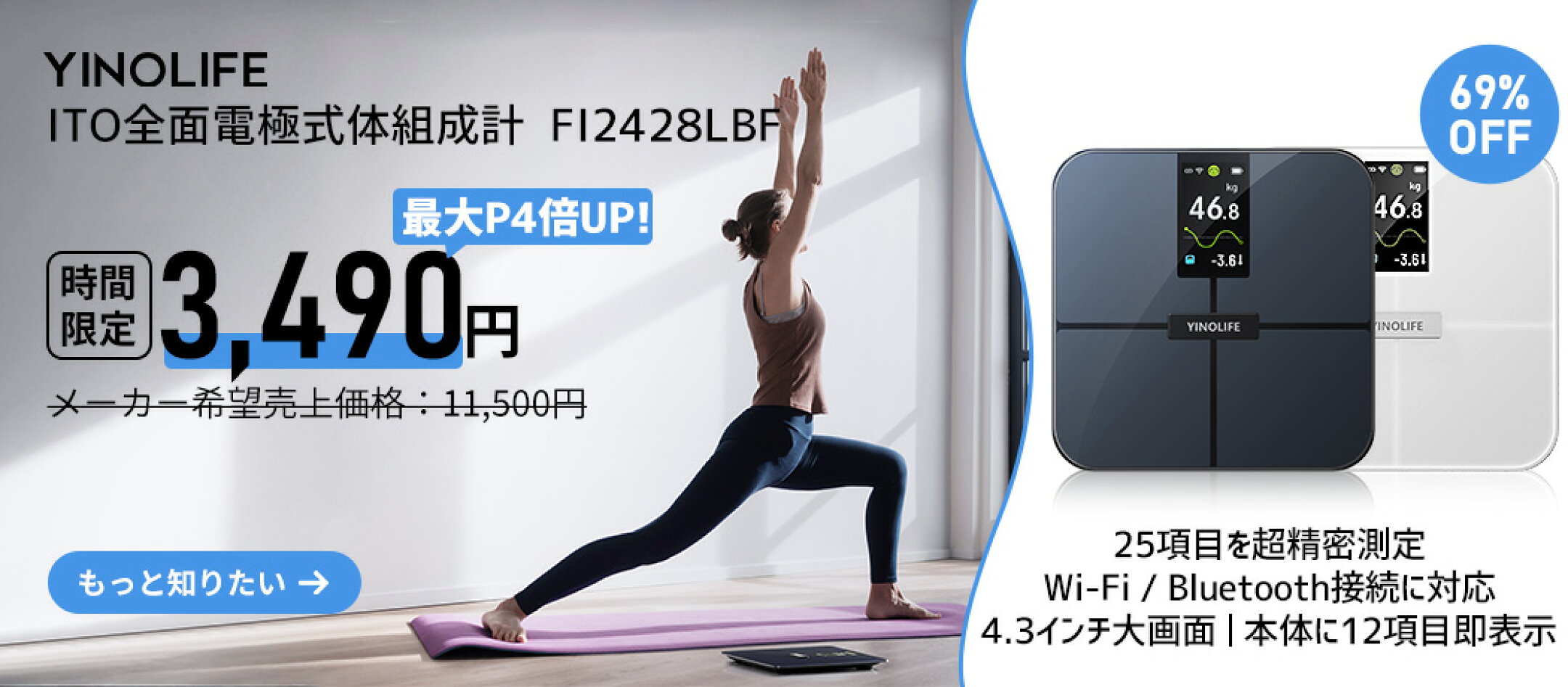 【最安値挑戦!82%OFF】YINOLIFE 体重計 アプリ連動 体組成計 Bluetooth WIFI デジタル 自動ON/OFF 薄型 ヘルスメーター スマホ連携 体脂肪率/内臓脂肪/筋肉率/基礎代謝量/BMI/体年齢 25項目測定 健康づくり 体重管理 自動認識 BIA技術 ITO測定面 電池付