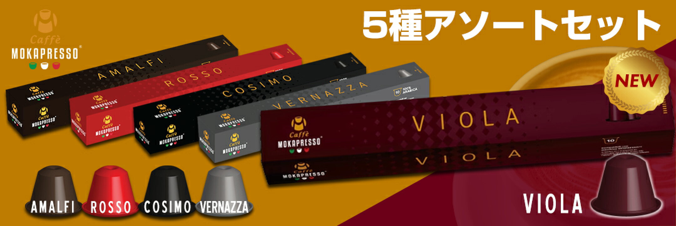 5種アソートセット5箱(50カプセル)MOKAPRESSO モカプレッソ カプセルコーヒー エスプレッソMade in Italy送料無料
