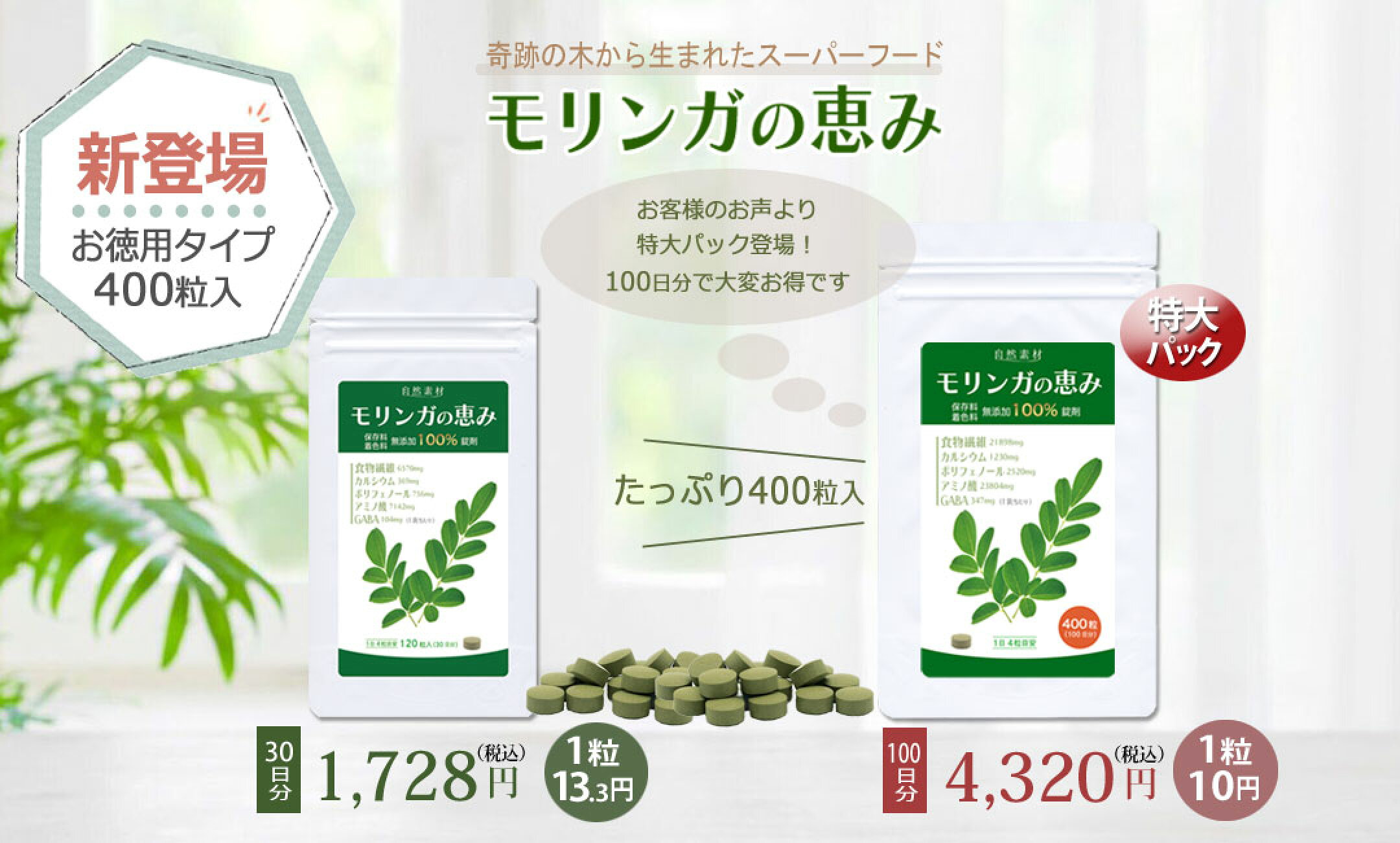 抜群の栄養を持つモリンガを純度100%の小粒錠剤に!