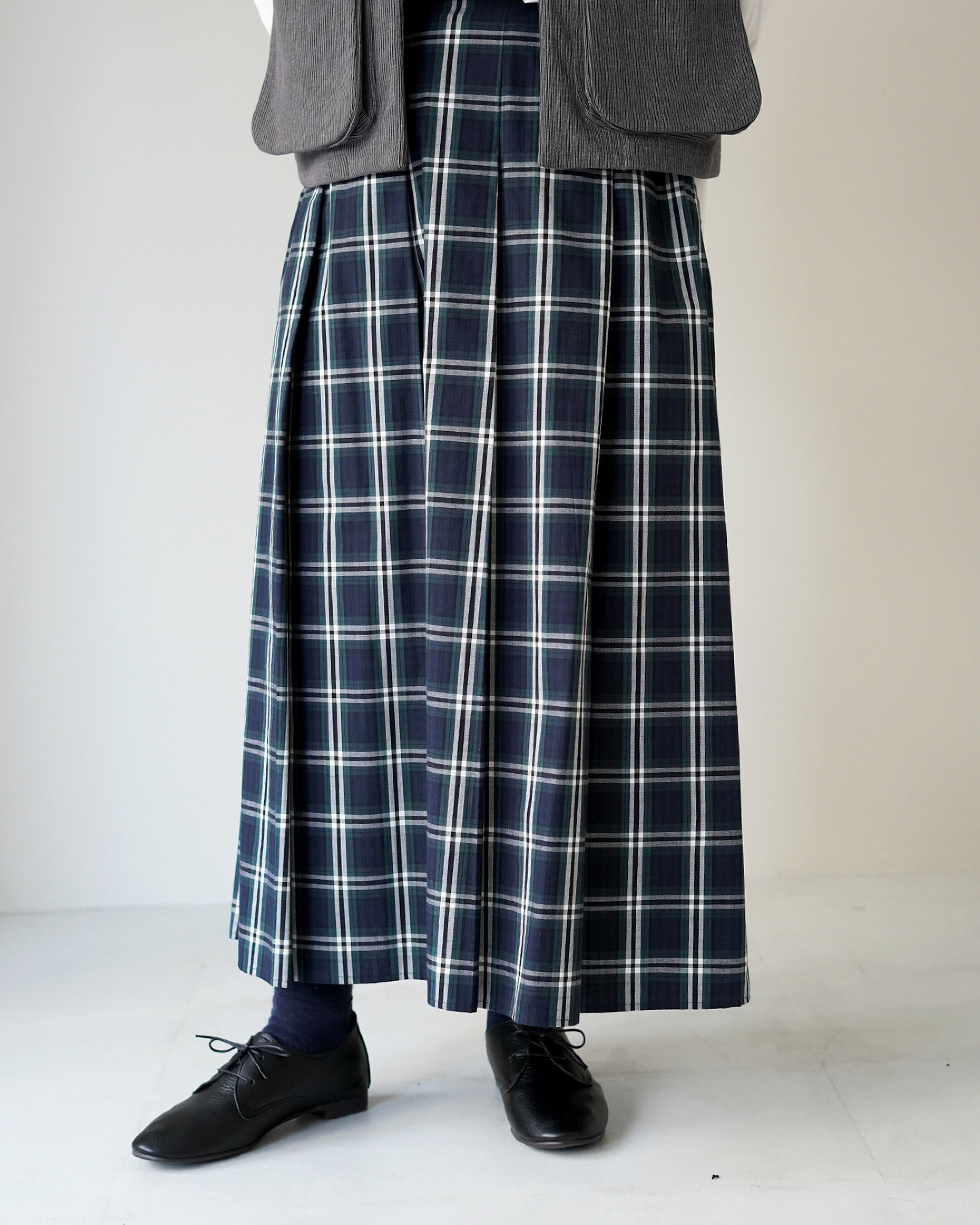 - 今回のメインアイテムは? YENNのベストです。 欲しすぎて買おうか悩んでるくらいお気に入り。正直あまり紹介したくなかったけど(笑)、一目惚れしたアイテム! - こだわりのポイントは? チェックスカートと細身リボンのレザーシューズでクラシカルな雰囲気を意識しつつ、トップスにはあえてモード感のあるアイテムを合わせて、甘すぎない絶妙なバランスに仕上げました。 「トラッドってなんやろ…?」と半信半疑で組んだスタイリングでしたが、スタッフのみんなにトラッド認定してもらえたので✌ By Watamura(152cm) ◆着用サイズ OUTER:F TOPS:F PANTS:F SHOES:23.5cm GOODS:F