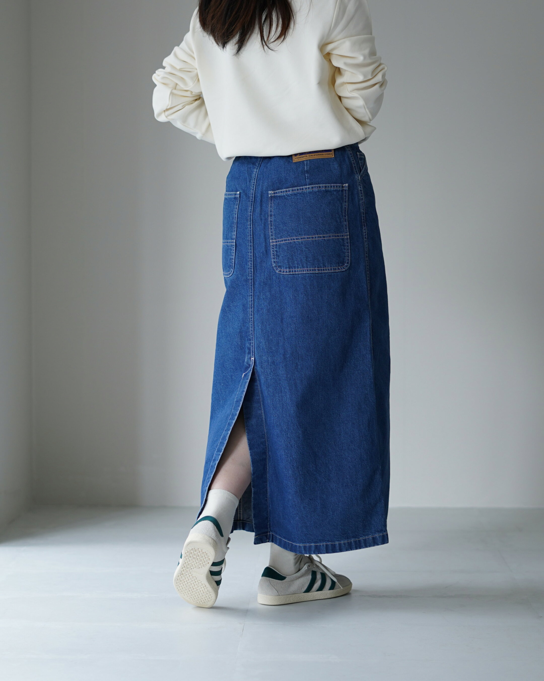 GRAMICCI(グラミチ) サッタ— デニムスカート / ロング マキシ丈 Aライン ウエストゴム ベルト付き スリット
