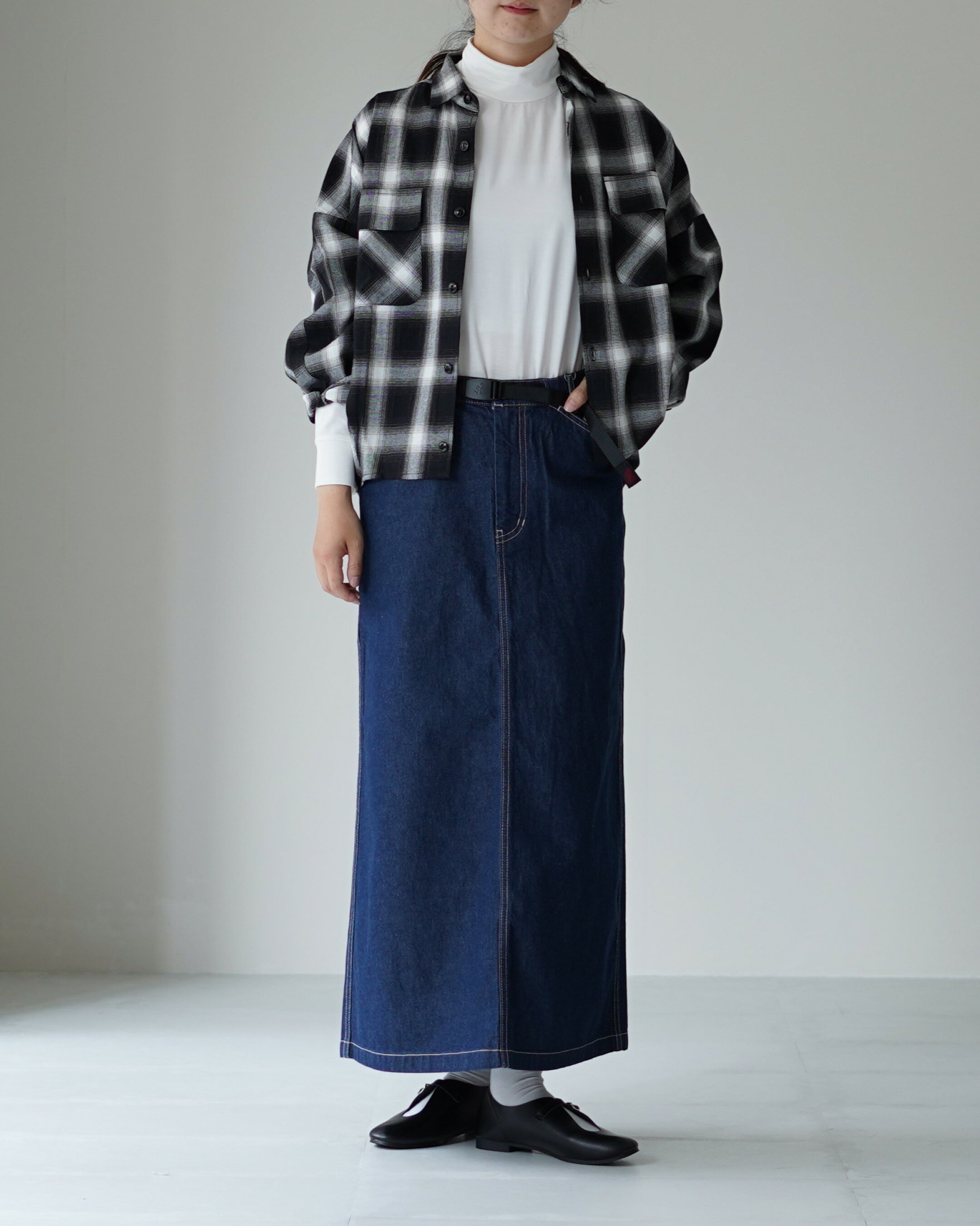 オールシーズン快適に穿ける、程よい厚みのコットンツイルと11オンスデニムが登場。 タイトなシルエットですが、ウエストゴムにファスナーつき!で、より「履きやすさ」にクローズアップされています。 ・ベイカースカートはバックファスナーでよりリラックスした履き心地。 ハリのあるツイル生地で、カジュアルな雰囲気ながらストンと落ちるキレイなシルエットに仕上がっています。 ・サッタ―デニムスカートはややAラインのシルエットで足さばきが◎ 白ステッチが利いていてメリハリのある表情に。