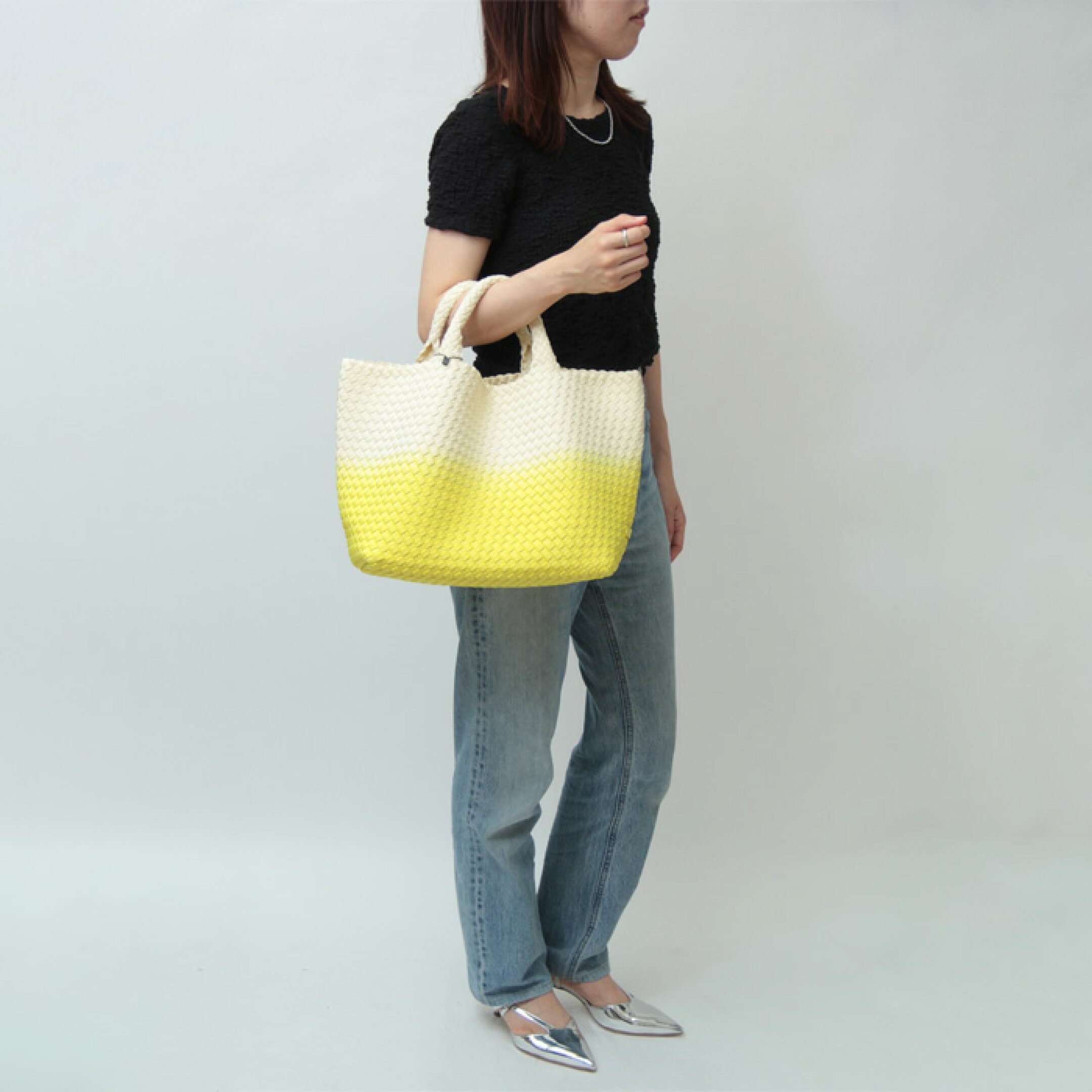 人間が健康であるために必要な三要素、覚えてますか? このバッグが満たしてくれるのは、 ビタミンカラーによる精神面のケア、そして、社会面の二つ! なぜなら、2025年DANJO上半期ベストバッグ! 間違いなく売れてる!王道部門堂々第1位の、 NAGHEDI(ナゲディ)のメッシュトートバッグシリーズだから!! 売れるバッグには理由がある。 多くの人が買い求めるバッグに、間違いはないという真理。 社会的に満たされるなら、 これを置いて十分な理由を見つけることの方が困難でしょう。 しかし、このバッグの魅力は単なる流行ではなく、 バッグとしての魅力がギュギュ~っと編み込まれていること。 編み込みのバッグだけにね。 バッグ全体を構成するのは、合成ゴムの一種を主成分とする素材。 ウェットスーツやPCケースの素材として採用されるほどの、 耐久性と衝撃吸収性をもっています。 レザーのバッグのようなお手入れも不要で、 汚れれば手洗いが可能。 夏のレジャーのお供としてハードに使いたい! そんな思いにも応えてくれるバッグです。 さらにそこへ、夏のビタミンカラーのスパイスと、 見るだけで爽やかな酸味が口の中に広がっていくような グラデーションが加わって、これ以上ない夏バッグが完成! 残りわずかですが、いまならまだ間に合いますよヽ(・∀・)ノ