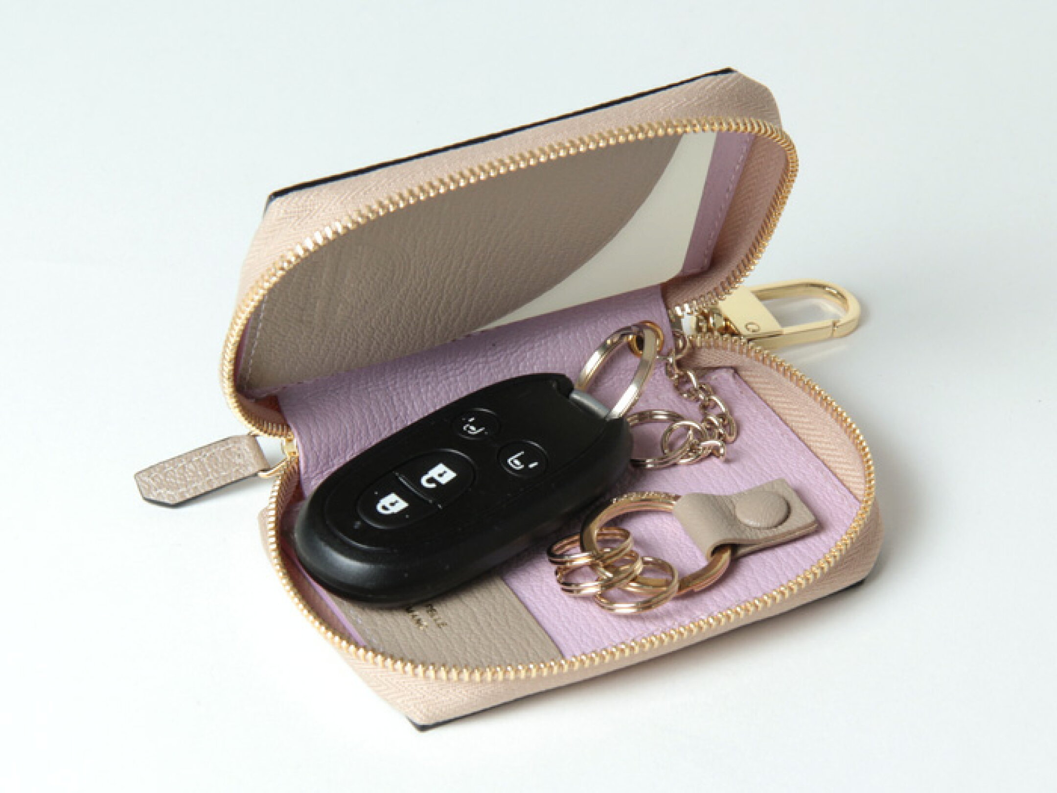 手に取った瞬間からわかる、 このレザー、只者ではない・・・! その秘密は、レザーの中でも特に丈夫といわれているゴートレザーを使用しているから。 質感の重厚さは男性的ながら、カラーは全部で12色展開と豊富。 どのカラーを選んでも、ユニセックスに馴染んでくれます。 スマートキーが楽々収まる容量も魅力的なのですが、 鍵が中で踊るのを防ぐポケットが付いていたり、 外付けのフックが大きめで取り外しがしやすかったり、 安心して持ち運べるのもポイントです◎