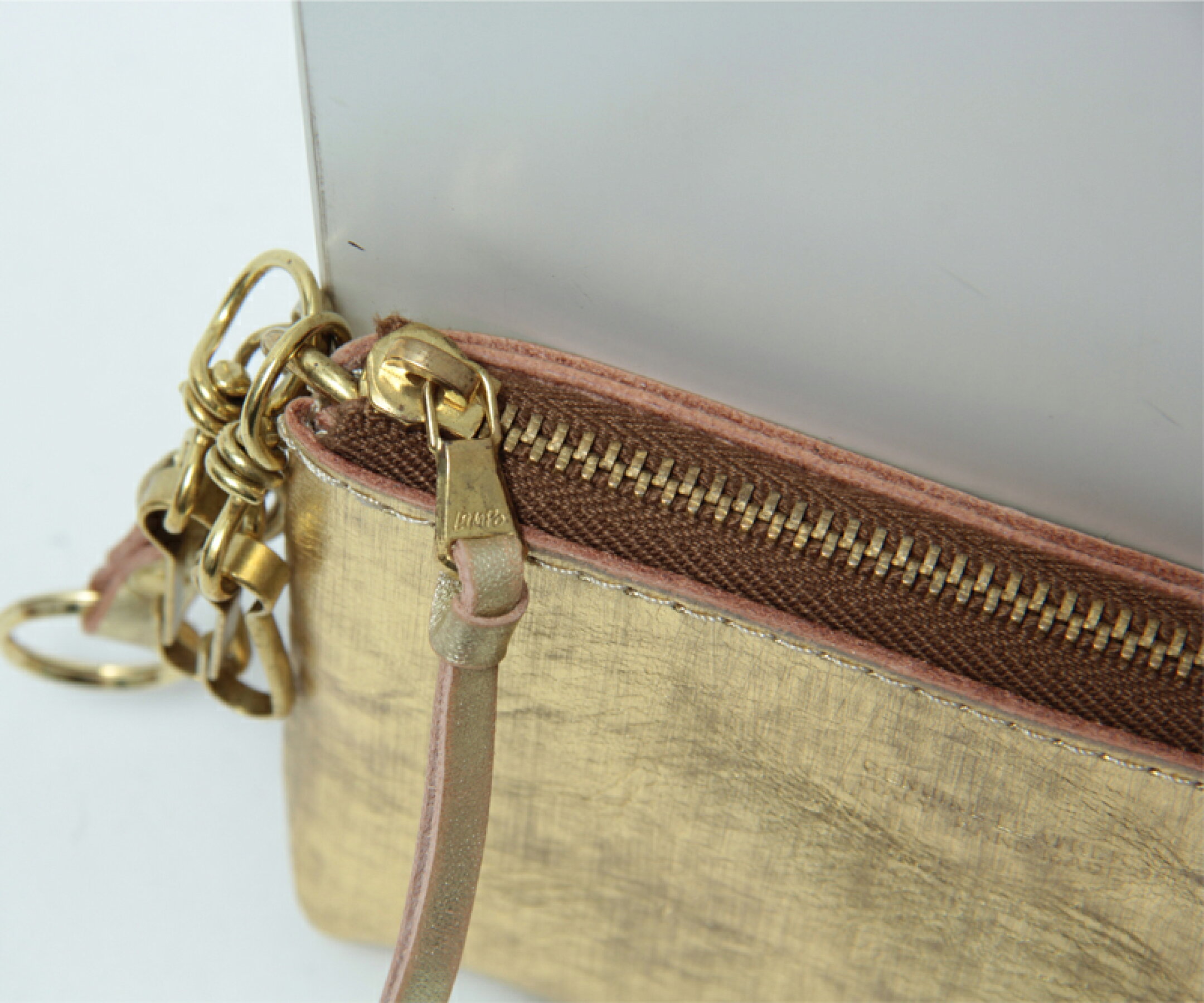 鉄格子・・・? こんなのはじめて見た・・・! と動揺すら覚えた革新的なミニ財布がこちら。 どうやら、『鎖かたびら』をイメージしたデザインのようですが、 まさかファッション関連でこの単語を目にするとは思いませんでした。 RPGの初期装備ですよ鎖かたびら・・・
