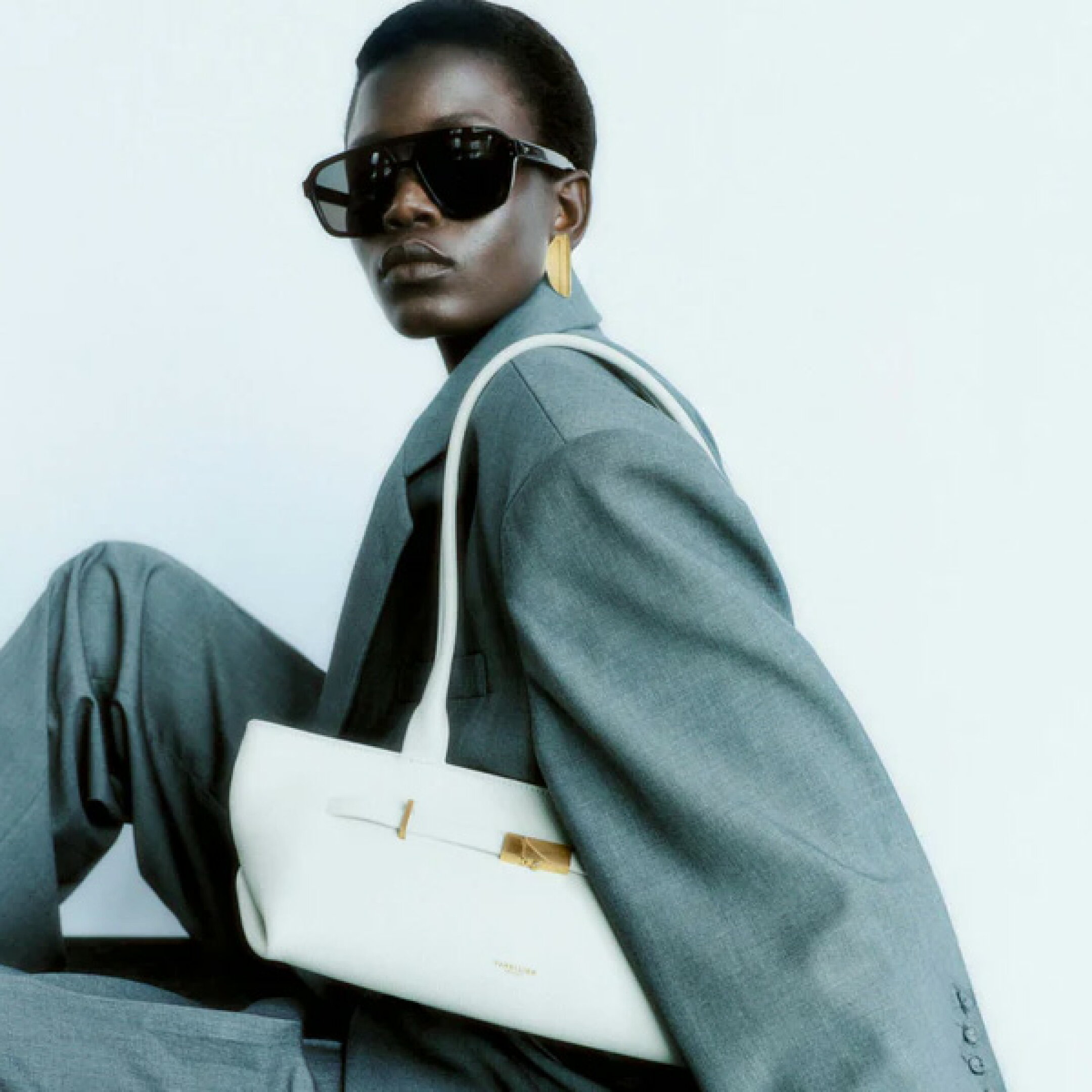 印象的な横長フォルムと独特のハンドルデザインが、洗練されたモードな雰囲気を演出します。 肩掛けしやすいゆったりとしたデザインに加え、浅めで横長の設計が荷物の出し入れをスムーズに。デザイン性と使い勝手を兼ね備えた優秀なバッグです。