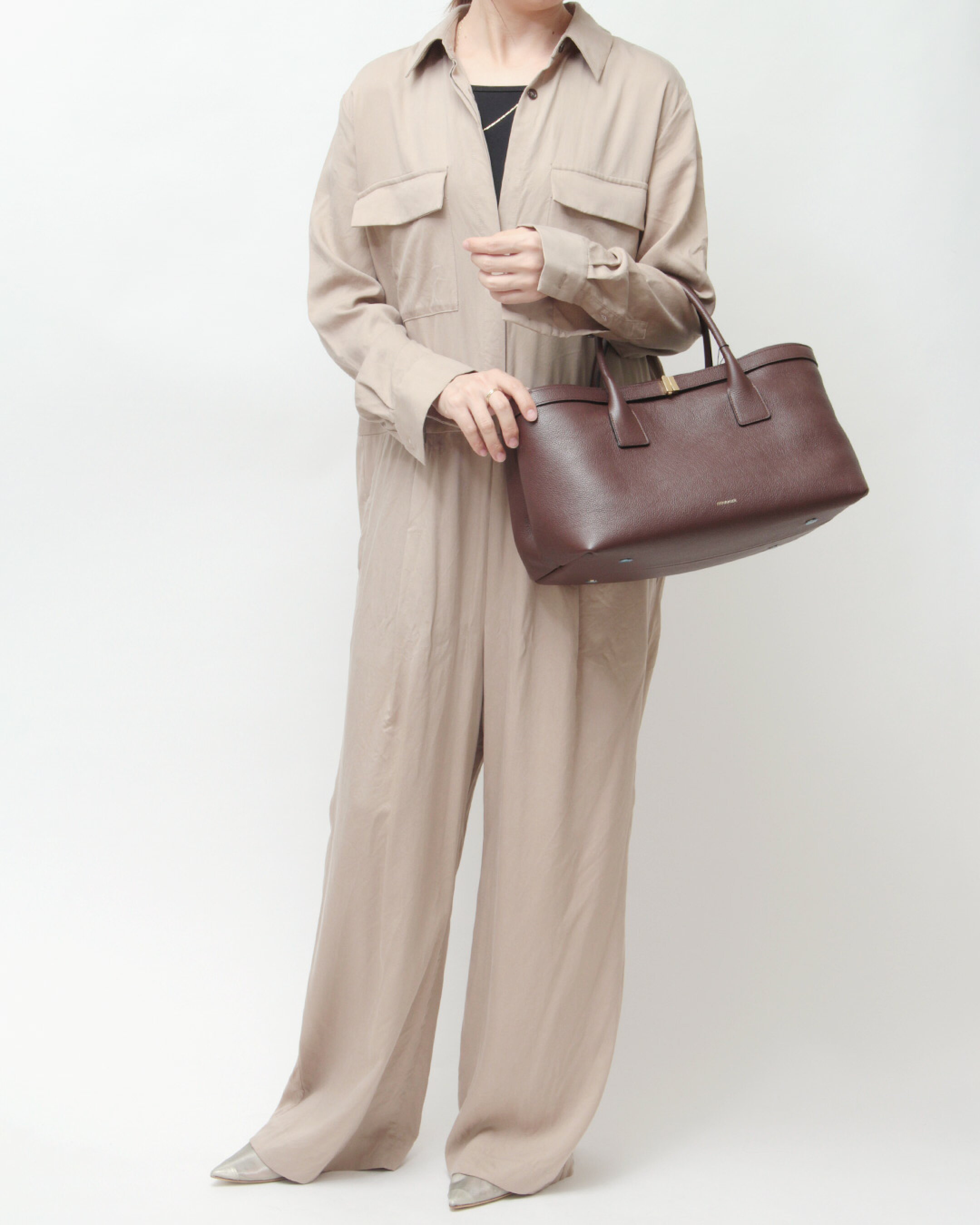 柔らかなトープカラーは、ナチュラルでやさしい印象を演出。カジュアルにもきれいめにも合わせやすく、持つだけでコーディネートに抜け感をプラスできます。
