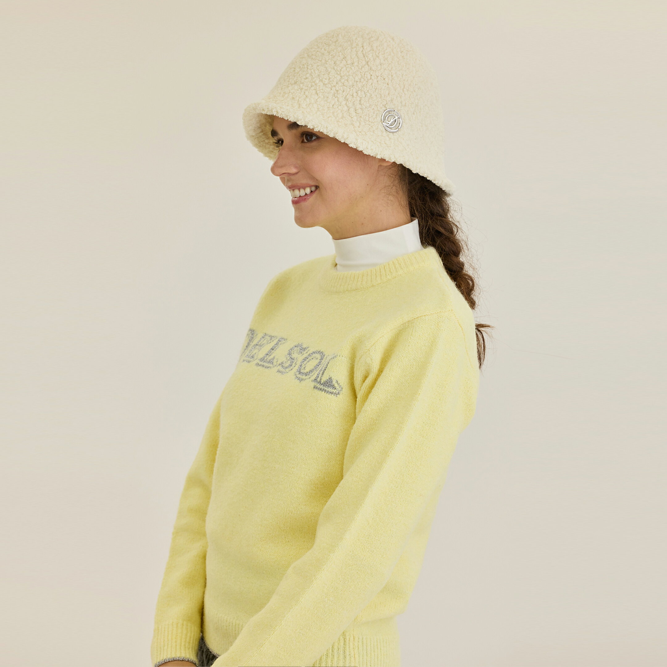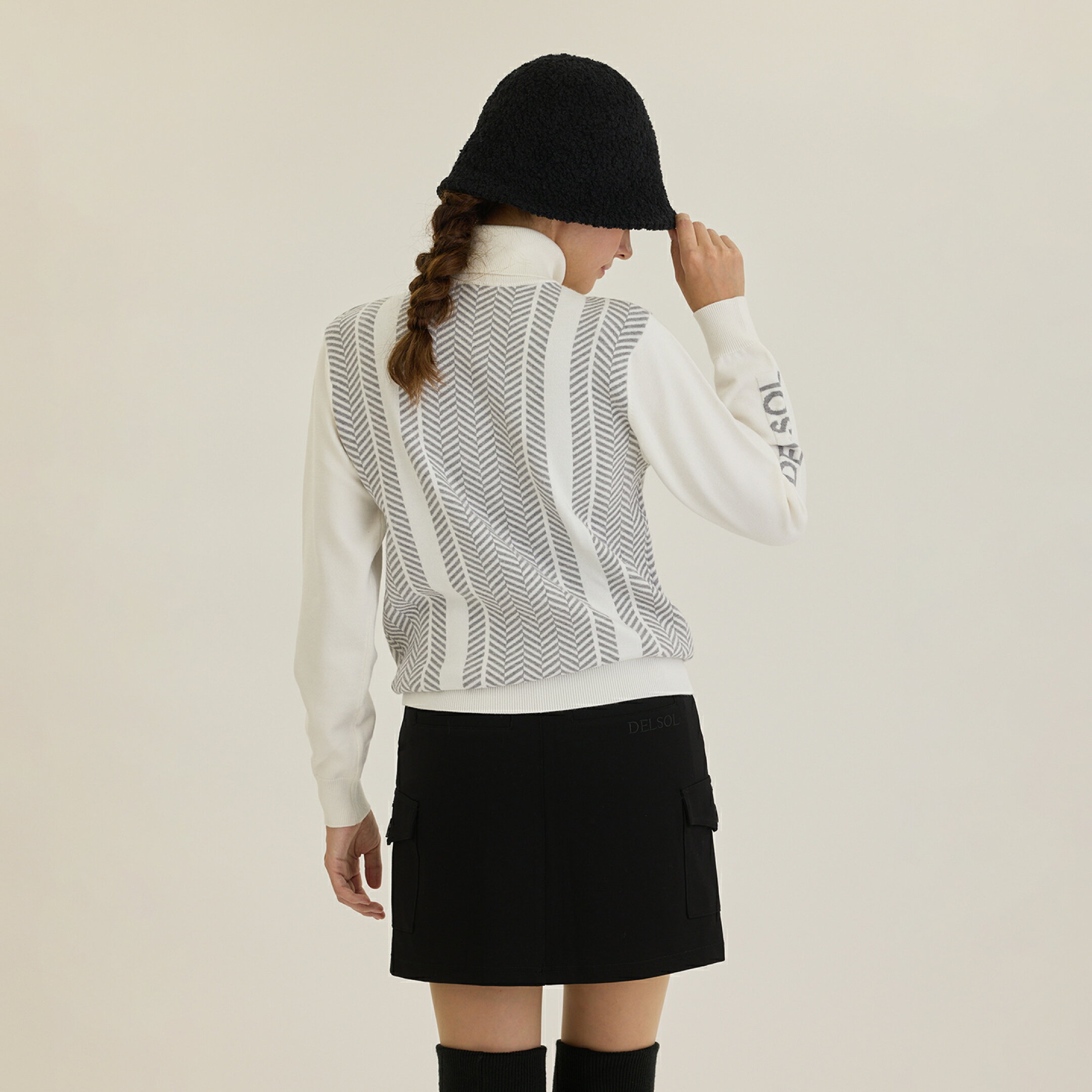 深め&ベル型のハットでモノトーンコーデに女性らしさをプラス ※ベル型ハットは完売いたしました。